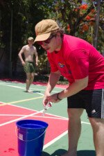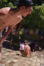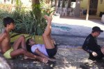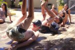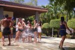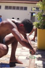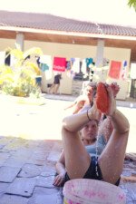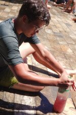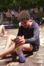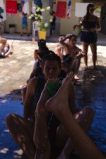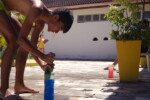 Muita água já rolou nessa manhã. Depois de comer uma deliciosa melancia, se puseram em marcha para a quadra, onde jogariam o histórico Revolta das Seringas. Uma espécie de bandeirinha com água, o que torna tudo muito mais divertido. Veja se não é!