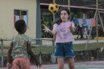 Baleando seus adversários, quem for atingido deve ficar sentado no chão e esperar o colega da equipe te salvar num vai e volta com a bola!!