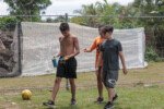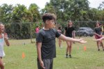 O território de Makatea é um atol elevado, localizado na Polinésia Francesa. Os atóis elevados são pequenas ilhas, erguidas acima do nível do mar por movimentos tectônicos, para se proteger de tempestades e garantir a segurança de seus recursos naturais. Os habitantes de Makatea, como bons guardiões de natureza, tiveram que testar suas habilidades de corrida e estratégia de grupo nessa manhã, para proteger seus territórios de invasões das equipes adversárias, ao mesmo tempo em que deveriam tentar adentrar as terras inimigas. Nesse jogo, vale “guardar caixão”, aliança e até mesmo traição, só não pode “dar bandeira”.