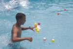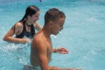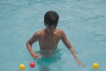 Depois de enfrentar o calor intenso das bandas maoris e disputar territórios com os adversários em terra, os Makatea tiveram que provar suas habilidades na água. A gincana aquática exigiu dos nossos acampantes muita velocidade e (principalmente) olhares nítidos para identificar as pequenas letrinhas e demais objetos espalhados pela piscina. Havia, lógico, o empenho de ganhar pela pontuação que a equipe vencedora receberia. Mas, a bruxa da comunicação que vos fala, desconfia que a vontade de se refrescar falou mais alto nessa atividade.