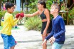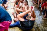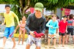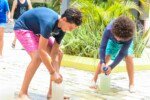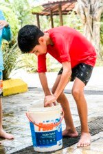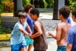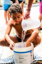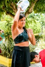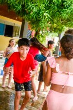 Com o já mencionado sol de rachar e o pula pula, corre corre pra fugir da bola venenosa deixando todo mundo suado, nada melhor que o frescor no Jogo do Bob Esponja, com direito a um banho inesperado que pegou todo mundo de surpresa!