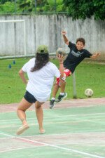 Acordamos pela manhã, pulando, encaixando e fugindo de todo jeito possível da bola venenosa que estava mais quente do que o sol de 40 graus que enfrentamos felizes e saltitantes.