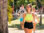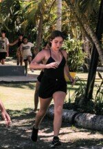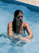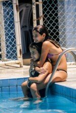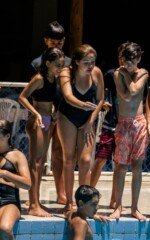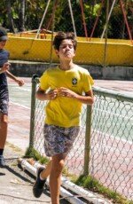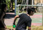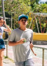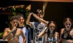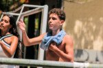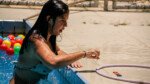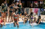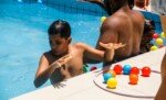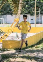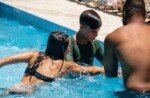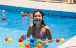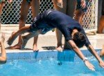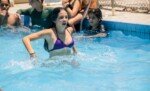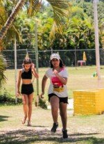 E é claro, depois de todo esforço gasto tentando deixar nossa ilha um brinco, essa galera merecia um belo de um mergulho no mar. Assim, aproveitaram para fazer uma pequena gincaninha nessas águas refrescantes. Mas não pense que aqui foi só corpo mole, não! Estavam todos focados nas brincadeiras e determinados a montar palavras com bolas e letrinhas soltas na água! Afinal, aqui no Arraial a gente se diverte e a gente relaxa, mas quando fala em gincana… é sangue no olho e vamo embora! E um, e dois, e três, E TCHIBUMMM!