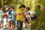 Hoje conhecemos o famoso FIO DE VIDA. Simbólico para todos os acampantes, o barbante colorido no braço está presente em vários jogos do acampamento. Aprendemos sobre a tradição e as regras da luta com o fio de vida. Agora é cortar as unhas, amarrar o fio no braço e bora pro jogo!