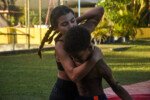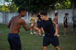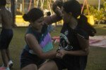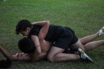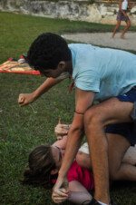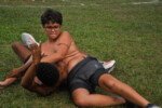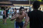 Na cultura Maori, o povo se cumprimenta com um “hongi”, ato em que duas pessoas encostam seus narizes e testas. Através desse movimento, eles acreditam que podem conhecer as almas um do outro. No Arraial, esse conhecimento é feito por um rápido toque de mãos. E a alma, ou melhor, a vida, está no braço esquerdo. Hoje, a galera do Makatea teve o “primeiro” contato na temporada (no campismo rolou uma prévia) com essa arte, que alguns até chamam de esporte, denominada fio de vida. Cada novo fio é uma nova vida que eles têm para vencer uma nova luta, e só perde esse jogo mesmo quem não se levanta para amarrar um novo pedaço de lã no braço esquerdo.