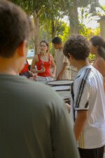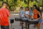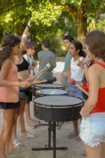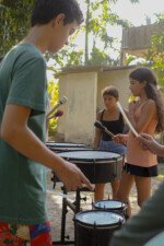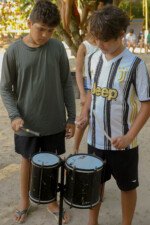 Dando ritmo as expressões, as crianças do cambiró se mexem como instrumentos. Na oficina de música, os sons se entrelaçam ao vento, ressoando tudo de bom o tambom ecoa o amor. Com o coração aquecido as crianças replitam o repique.