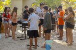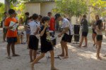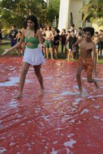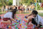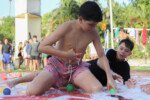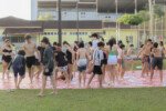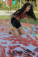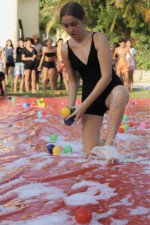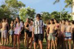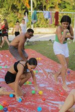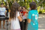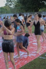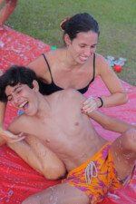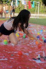 Na competição da equipe carimbó, a lona de sabão brilha sob o sol, escorregadia e desafiadora, o objetivo é simples: desligar com tudo deixando o corpo trabalhar. Cada movimento é uma mistura de agilidade e estratégia. Os acampantes vão se esticando e se virando para com seus braços agarrar, evitando as bolas coloridas escapar.