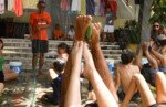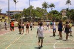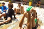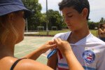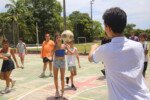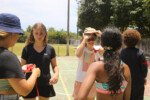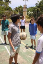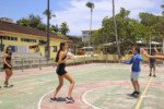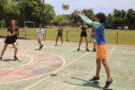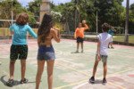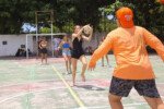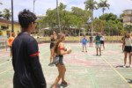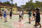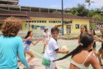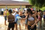 A equipe carimbó corre pela quadra, ansiosa pela bola que rola entre elas. Com agilidade, tentam pegá-la e passa-lá para os acampantes, buscando a melhor chance de balear o time adversário. A disputa é forte, mas a diversão é muito maior e no final o que importa é alegria de estar juntos, jogando e aprendendo.