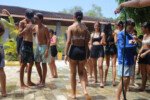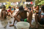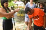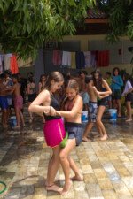 A equipe carimbó acordou com os pés ligeiros e espiríto leve para correr com a água. Eles tiveram que atravessar uma pista com a esponja encharcada de água. Cada passo uma corrida contra o tempo: cada gota caída uma esperança de vitória. O objetivo? Encher o balde do seu time mais rápido que o do adversário. Neste corre corre, a esponja se torna um tesouro e vai e volta.