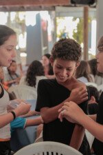 Os “bois bumbás” seguem impressionando com tanta inteligência e lógica nos jogos! Dessa vez foi trocando as bolas, correram por todo o acampamento atrás dessas bolinhas e depois as entregaram no toldo. Desse jeito que eu contei até que pareceu fácil mas nessa batalha, eles pagaram algumas “prendas”, tipo 15 polichinelos ou 10 abdominais! Não sei se foi fácil mas divertido tenho certeza!