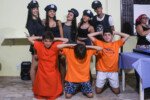 Vocês acham que é só nas brincadeiras que a gente se diverte??? É claaaaro que não. Para começar a noite já animada fizemos um jantar temático!! Com a promessa descumprida de um delivery, cada mesa se fantasiou de um tema e competiram entre si! O prêmio não foi um Ifood… Mas uma caixa de chocolate!