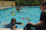 Nada melhor que se refrescar na piscina nesta manhã quente de verão e com muita brincadeira e diversão, eles nadaram determinados a formar palavras com as letras espalhadas nas águas e pegar as bolinhas que valiam mais pontos. Essa galera do Balacobaco são verdadeiros heróis aquáticos.