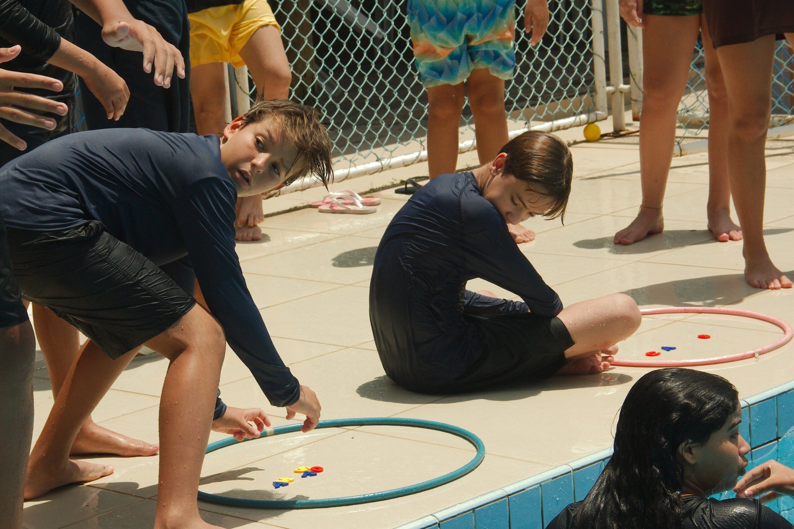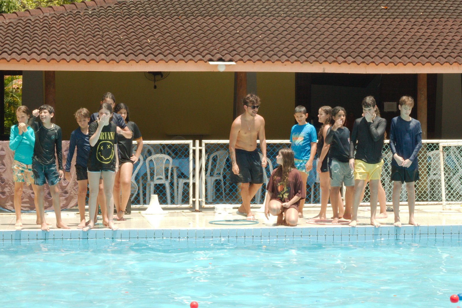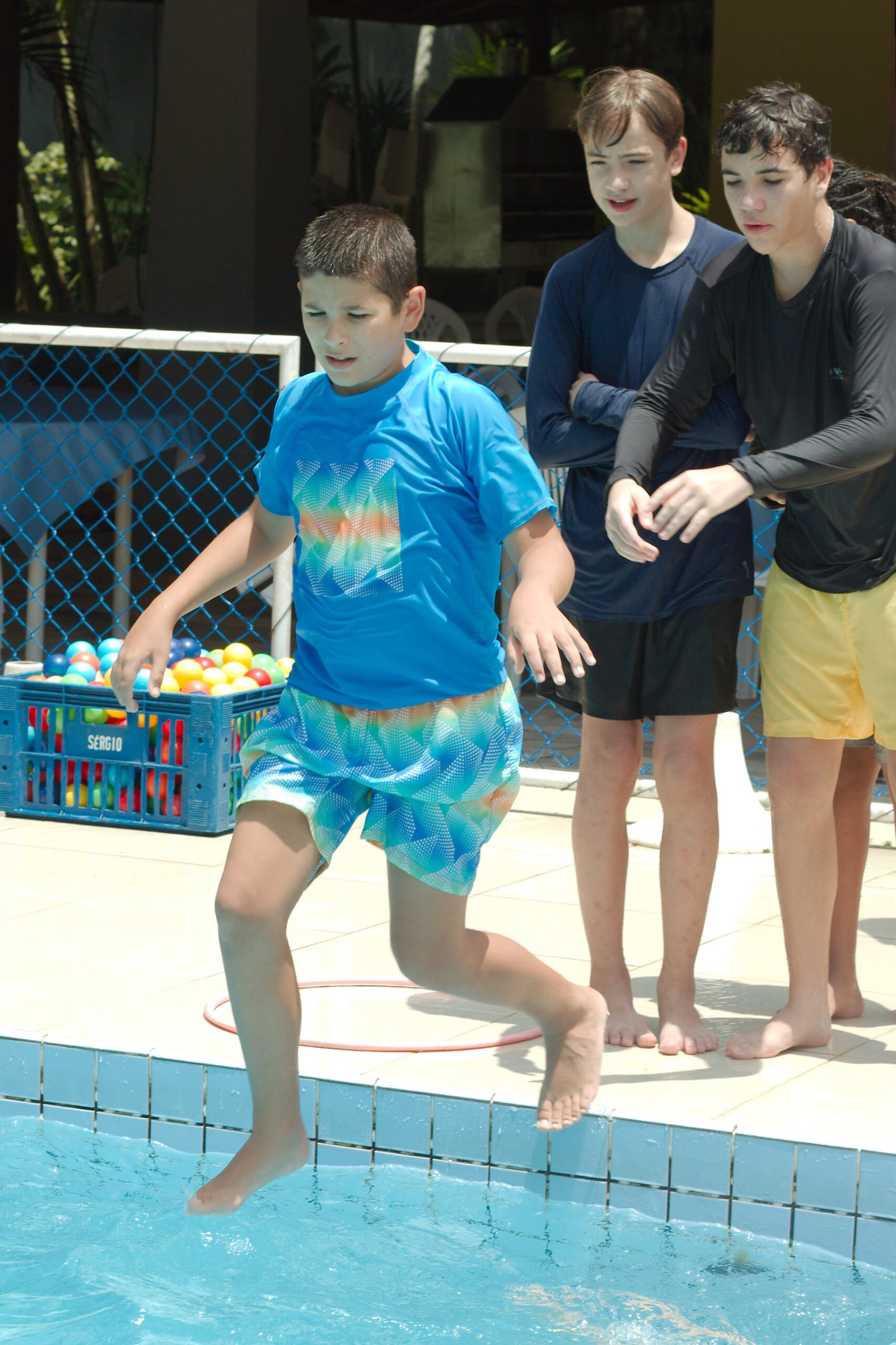 Nada melhor que se refrescar na piscina nesta manhã quente de verão e com muita brincadeira e diversão, eles nadaram determinados a formar palavras com as letras espalhadas nas águas e pegar as bolinhas que valiam mais pontos. Essa galera do Balacobaco são verdadeiros heróis aquáticos.