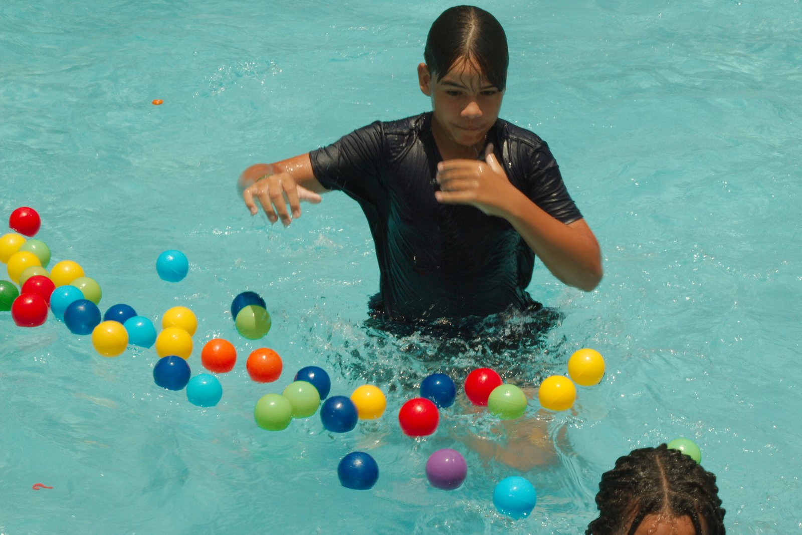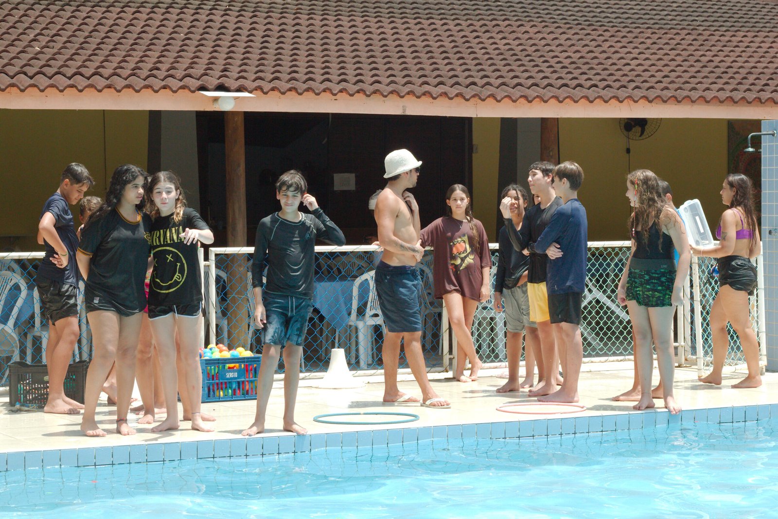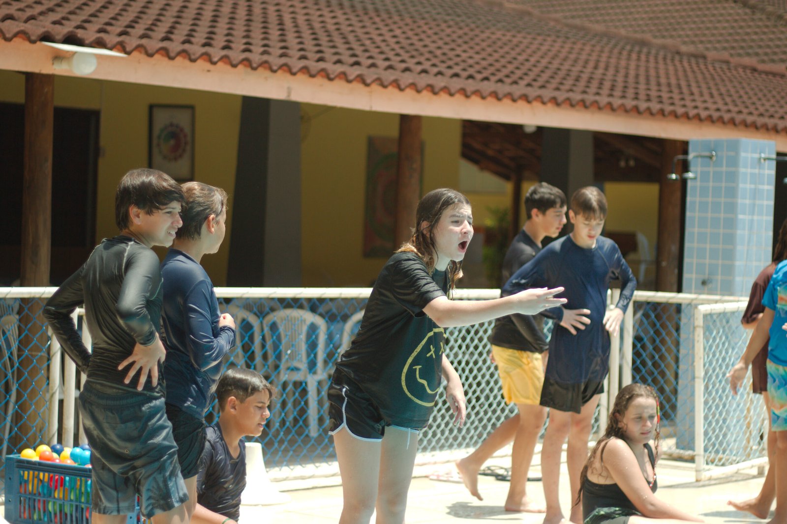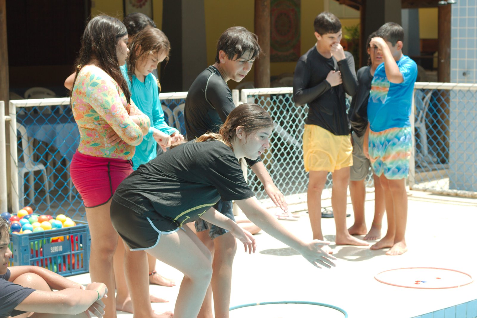 Nada melhor que se refrescar na piscina nesta manhã quente de verão e com muita brincadeira e diversão, eles nadaram determinados a formar palavras com as letras espalhadas nas águas e pegar as bolinhas que valiam mais pontos. Essa galera do Balacobaco são verdadeiros heróis aquáticos.