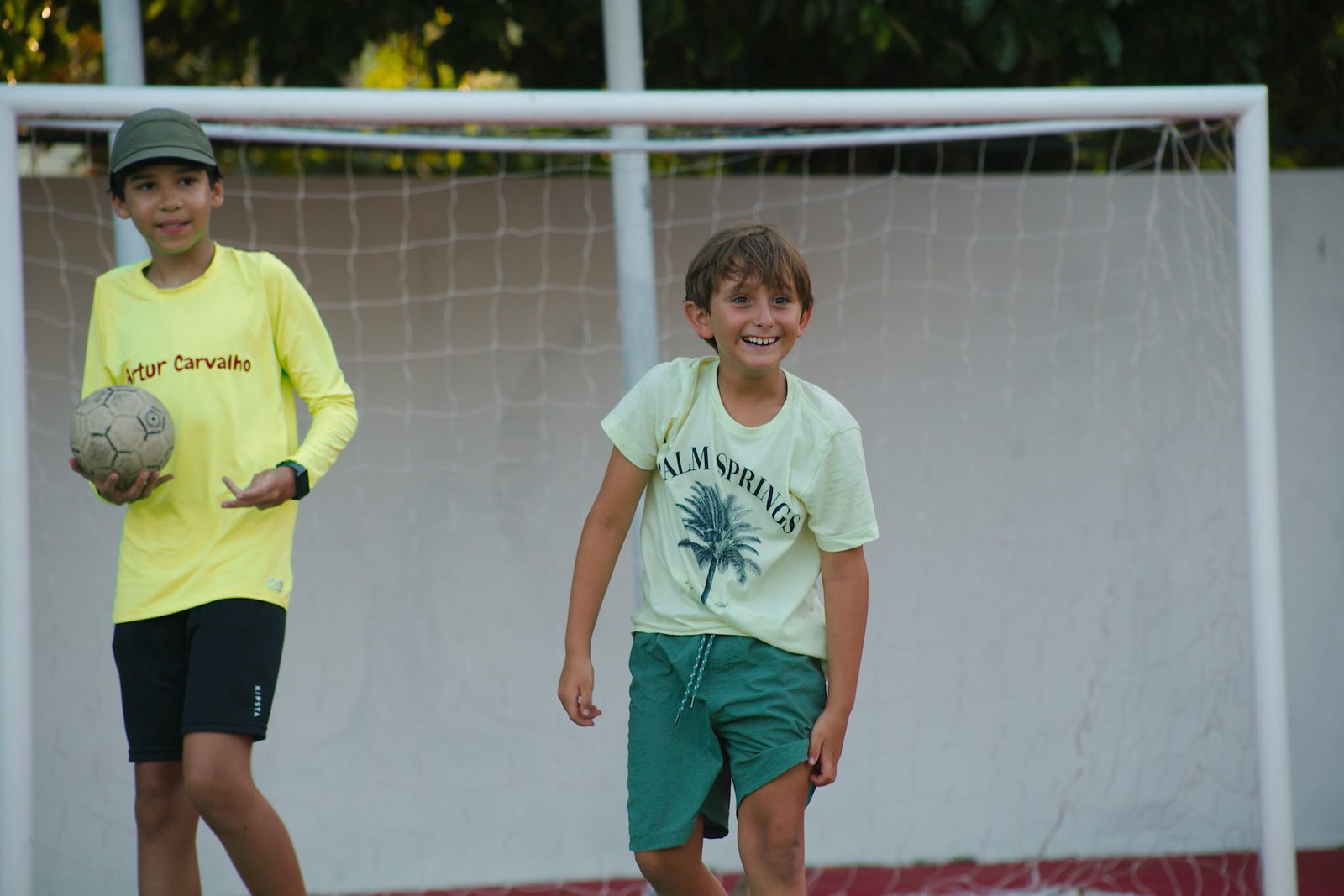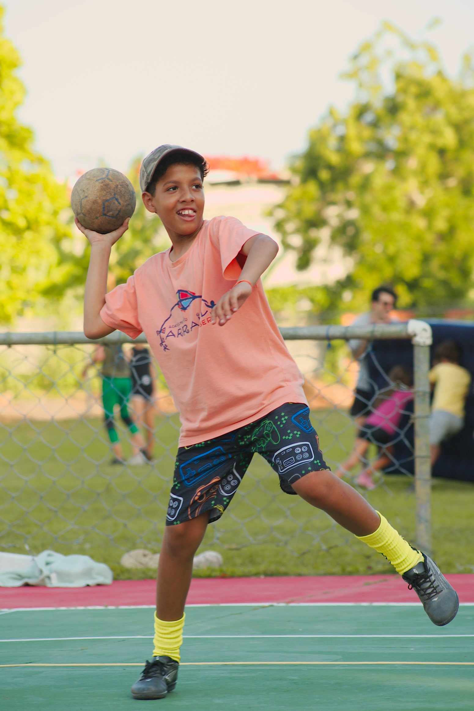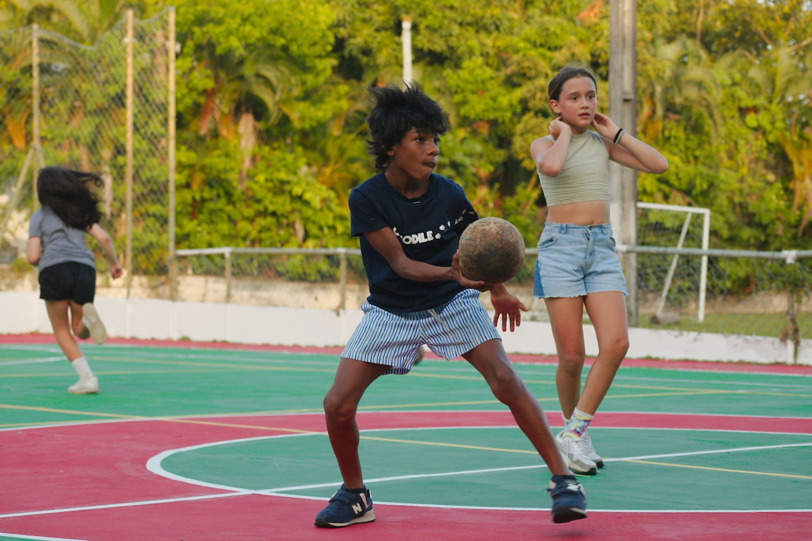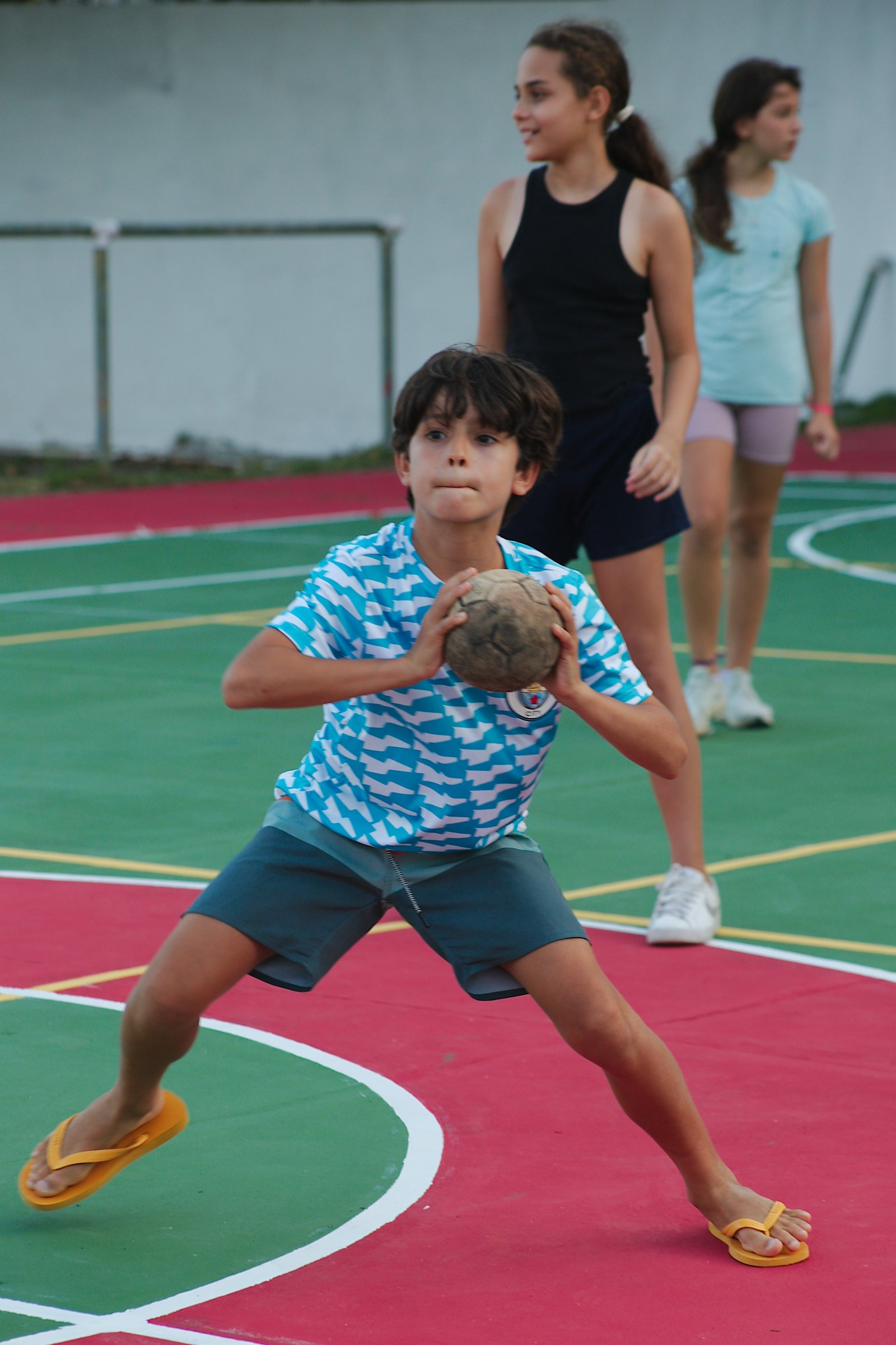 Agora, para agitar o corpo e gastar a energia pós lanche, foram em destino a quadra, onde jogaram Linha de Frente! Nessa queimada diferenciada, a cada vez que você é baleado, mais próximo do seu oponente você deve chegar, ficando mais e mais difícil se esquivar das bolas!