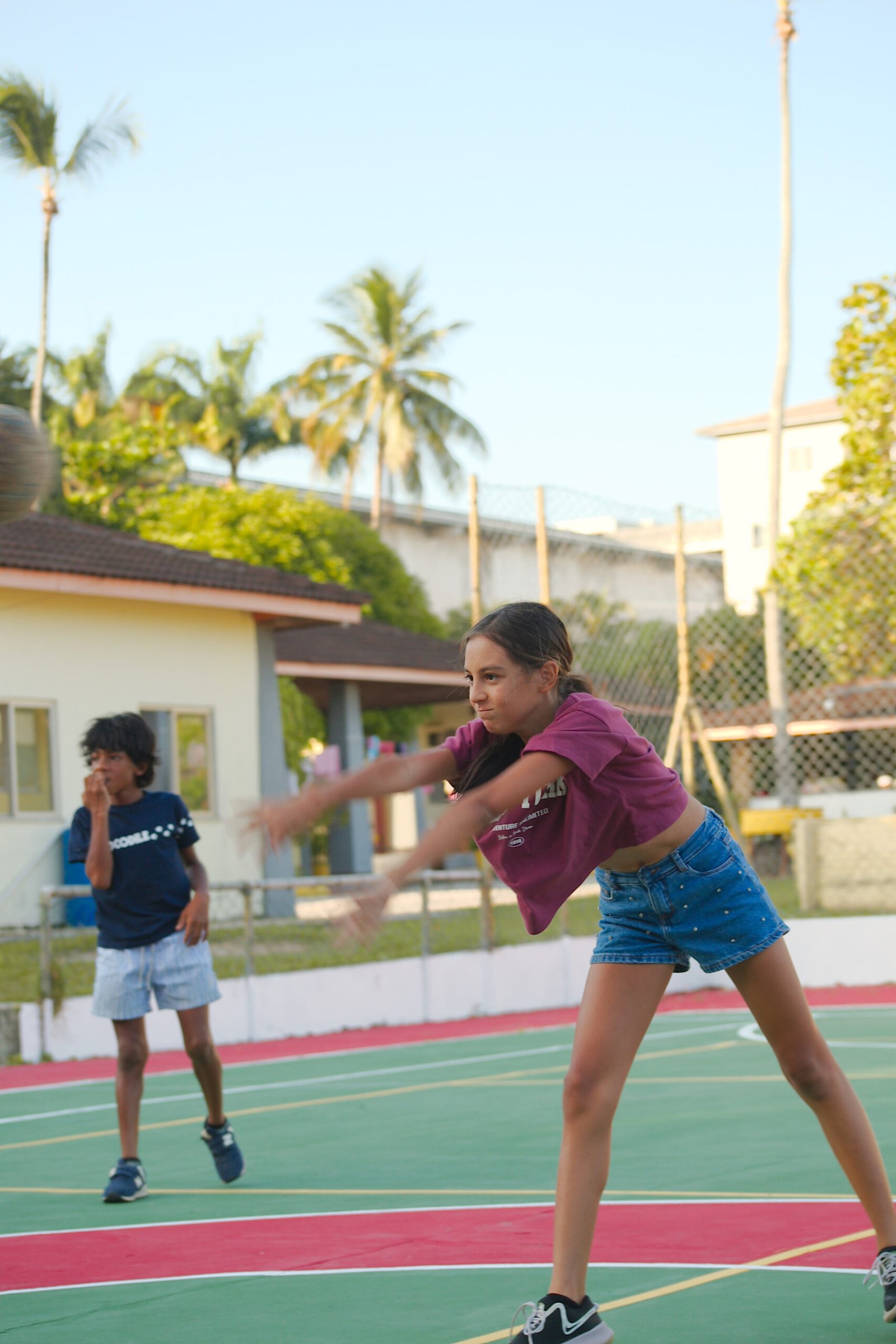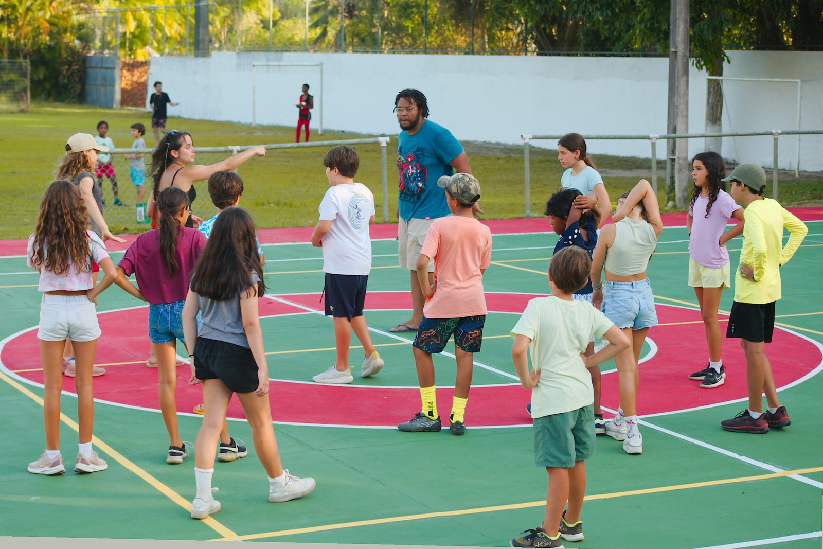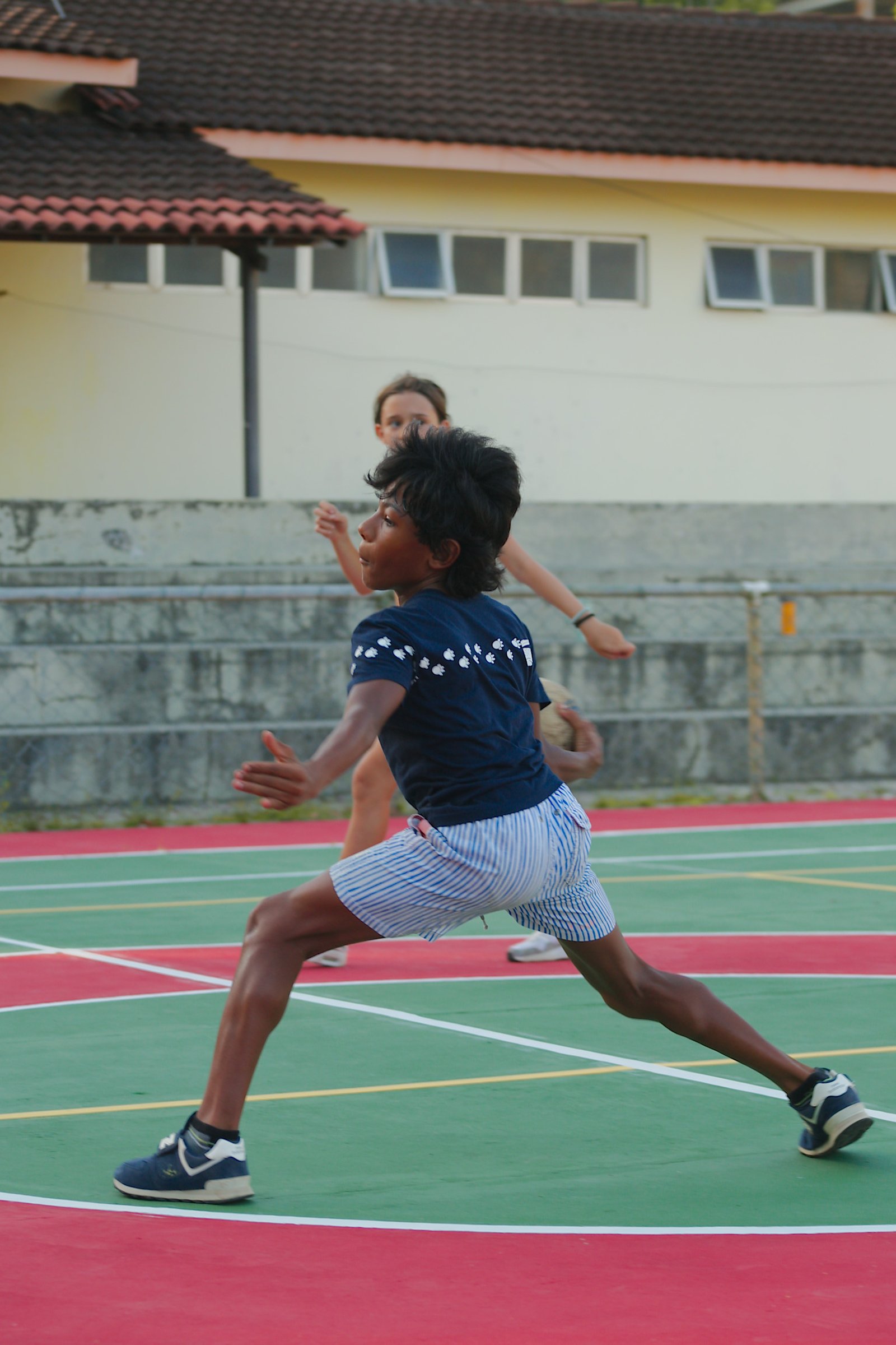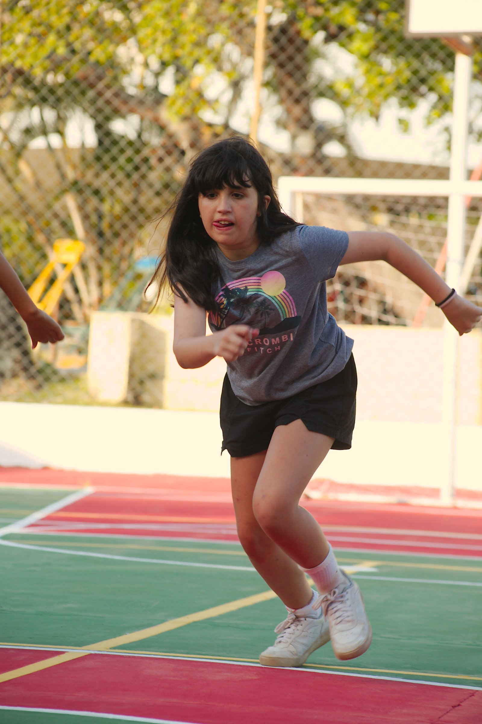 Agora, para agitar o corpo e gastar a energia pós lanche, foram em destino a quadra, onde jogaram Linha de Frente! Nessa queimada diferenciada, a cada vez que você é baleado, mais próximo do seu oponente você deve chegar, ficando mais e mais difícil se esquivar das bolas!