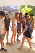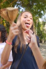 Tio Guiguio chamou a os Gandaya para aprender coisa de ritmo. Ele fala que tudo na vida tem ritmo e que não existe isso de ser desritmado! E é mesmo tudo segue um andamento: o coração, o piscar de olhos, o caminhar. É só prestar atenção ao corpo e à natureza, pois até o canto do pássaro marca a passagem do tempo.