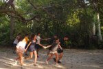 Ele levou a galerinha pro bosque e fez ressoar o louco batuque do tambor para cada um dos presentes. Todo mundo fez música. E depois de espantar todos os males, ficaram tão extasiados que começaram a trocar as bolas.
