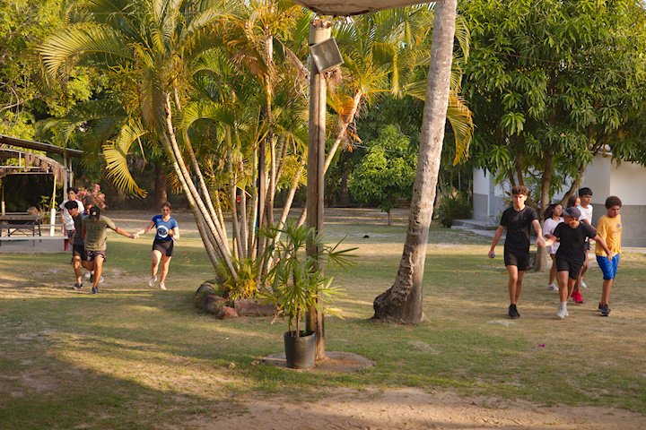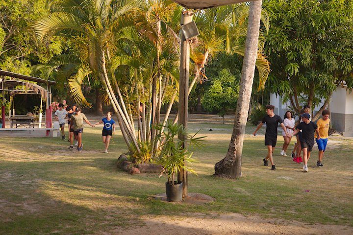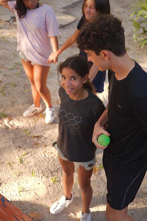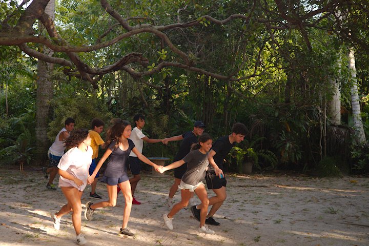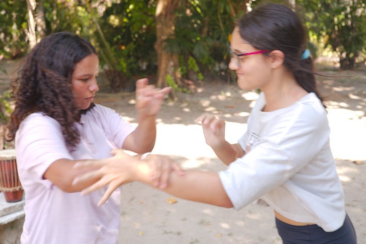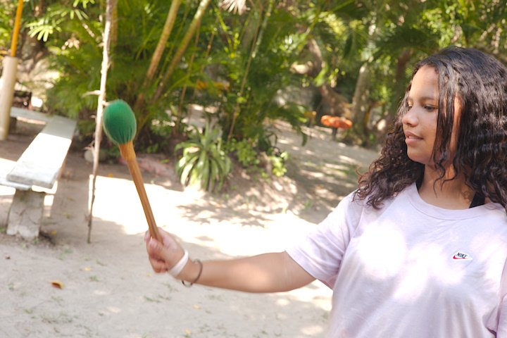 Tio Guiguio chamou a os Gandaya para aprender coisa de ritmo. Ele fala que tudo na vida tem ritmo e que não existe isso de ser desritmado! E é mesmo tudo segue um andamento: o coração, o piscar de olhos, o caminhar. É só prestar atenção ao corpo e à natureza, pois até o canto do pássaro marca a passagem do tempo.