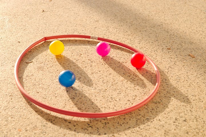 Trocando as bolas é uma brincadeira que um grupo tem que completar seu bambolê com bolas da sua cor, enquanto ficam atentos pra não deixar o adversário sujar com outra cor e atrapalhar o jogo ao mesmo tempo que pensa em fazer exatamente isso para atrasar o outro: colocar bolas de outra cor, para eles terem que perder um tempinho na buca e na troca das bolas.