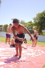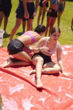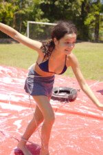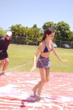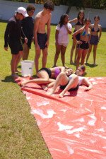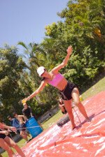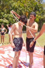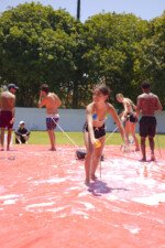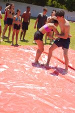 A lona é um momento esperadíssimo. Escorregar e cair nunca foi tão divertido! E essa temporada tivemos o advento da Lona 2.0, que as equipes presas uma na outra tinham que aos tropeços atravessar a lona para depositar uma bolinha. Ficaram amarradões!