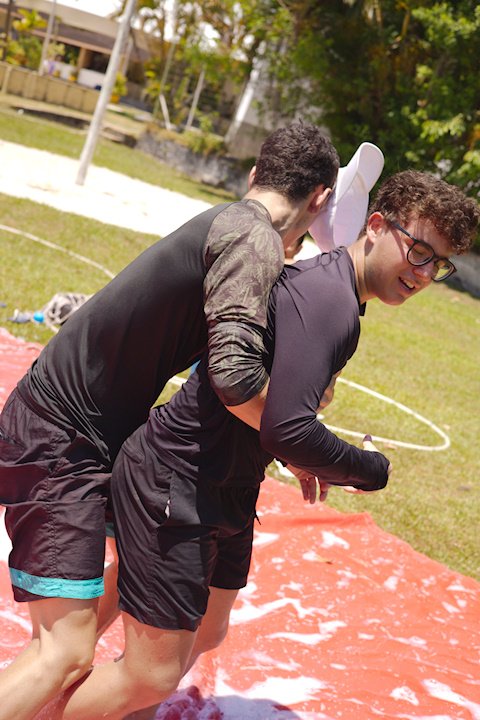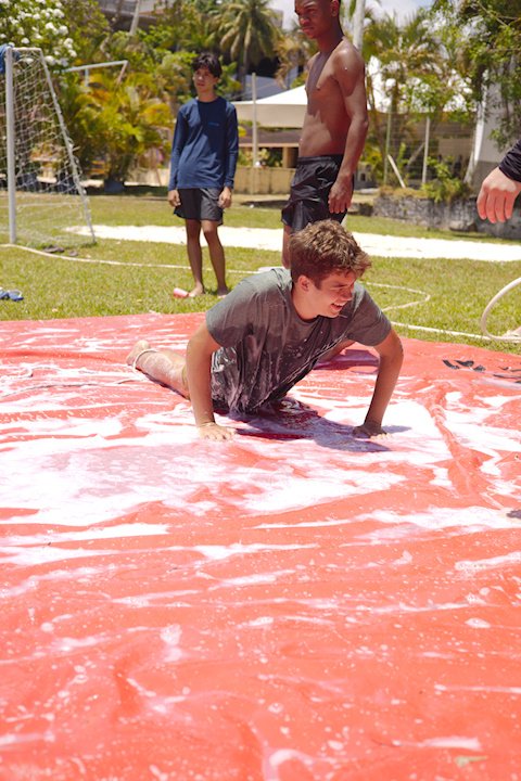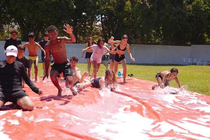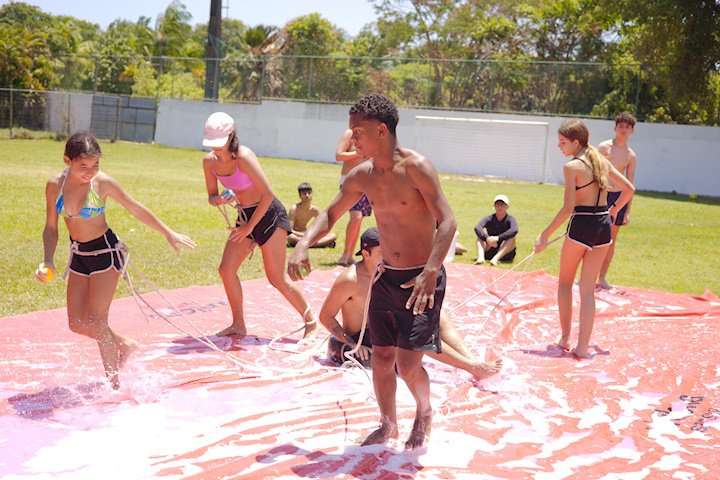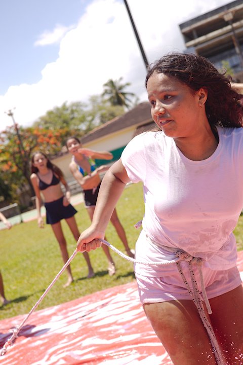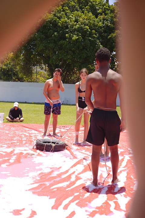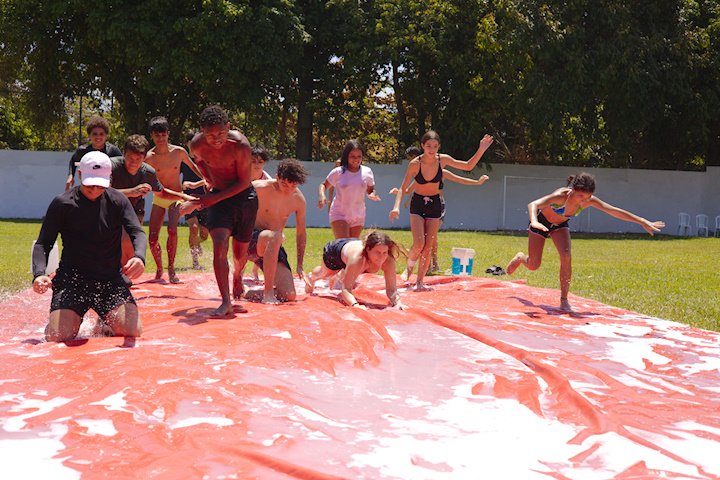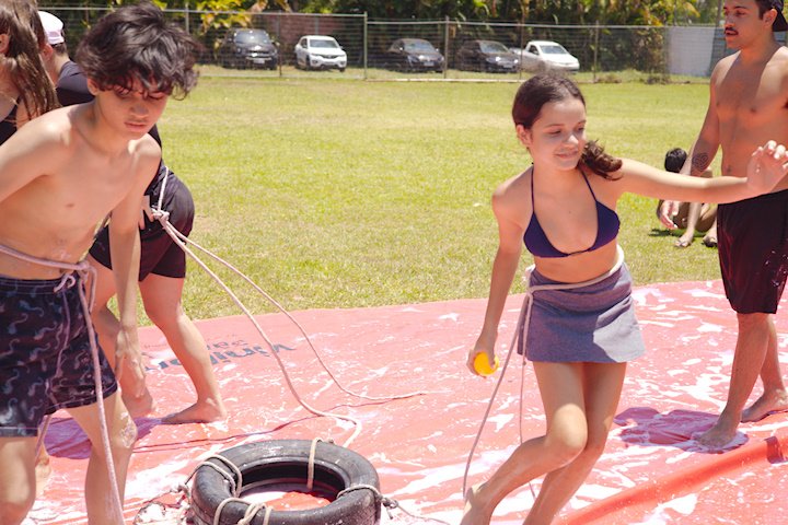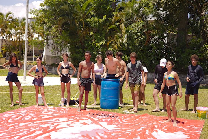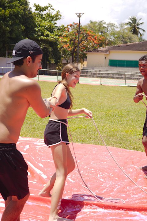 A lona é um momento esperadíssimo. Escorregar e cair nunca foi tão divertido! E essa temporada tivemos o advento da Lona 2.0, que as equipes presas uma na outra tinham que aos tropeços atravessar a lona para depositar uma bolinha. Ficaram amarradões!