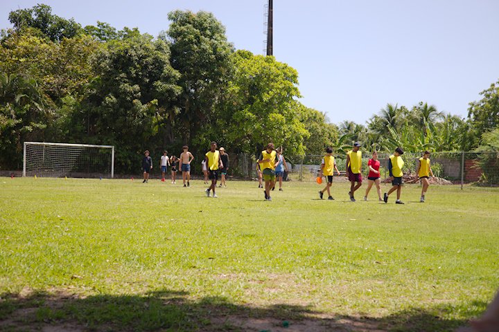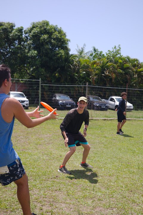 O disco voador pairou no ar, mas caiu na gandaia. E de mão em mão virou frisbee para os Gandaia que passaram esta manhã ensolarada no campão.
