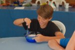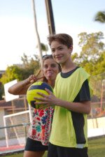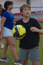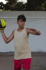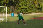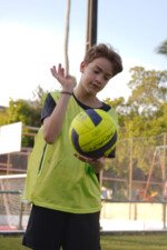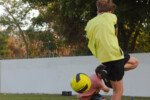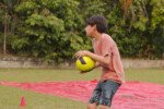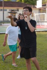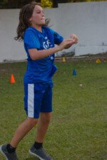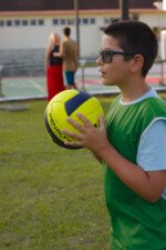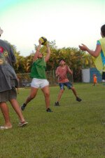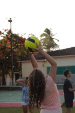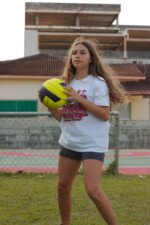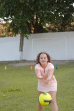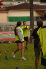 O jogo é um mistura de baleou, handebol e futebol. Pois as equipes ao passar a bola para o colega é preciso jogar com a mão. A movimentação acontece livre, de um jogador para outro até chegar próximo ao gol. Porém na passagem da bola os jogadores podem balear o adversário e o mesmo fica sentado baleado até alguém do seu time agarrar a bola para que ele siga no jogo. Seguindo a ordem da gincana, o grupo foi divivido nos times Jereré e Jamales. E a galera não decepcionou, seguiram as erras de forma leve e divertita mas com muita disputa para alcançar os pontos para sua equipe.