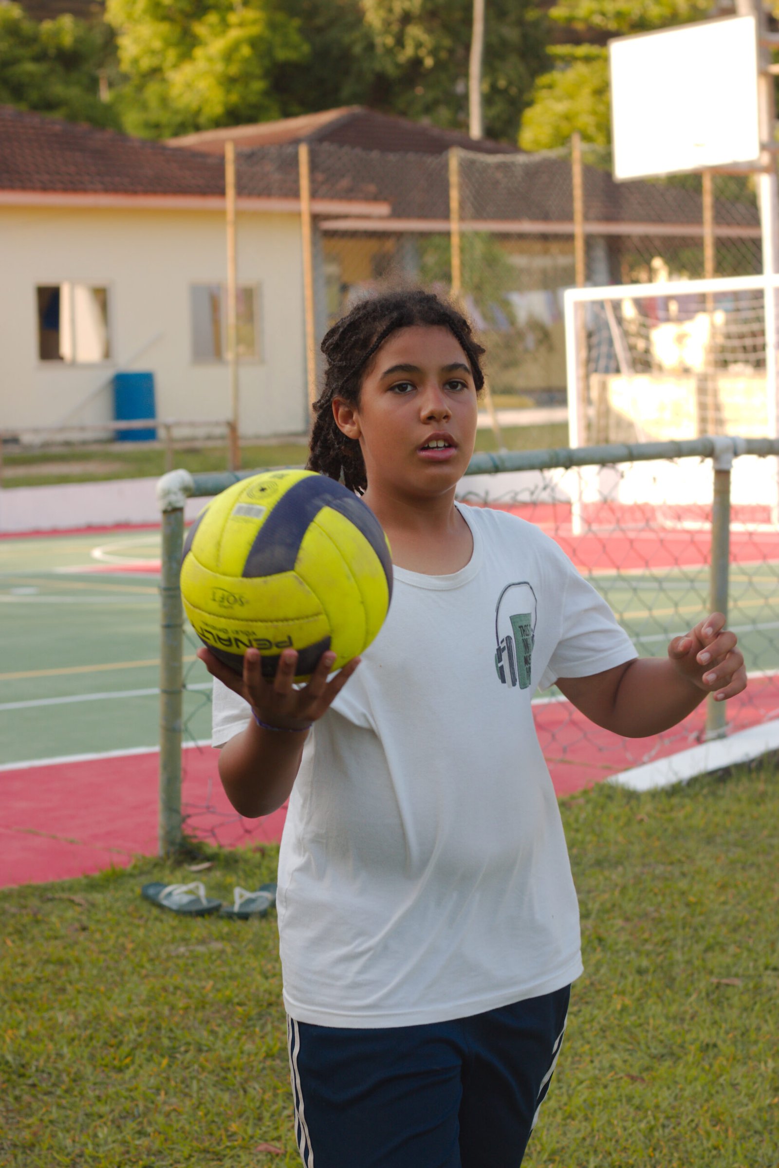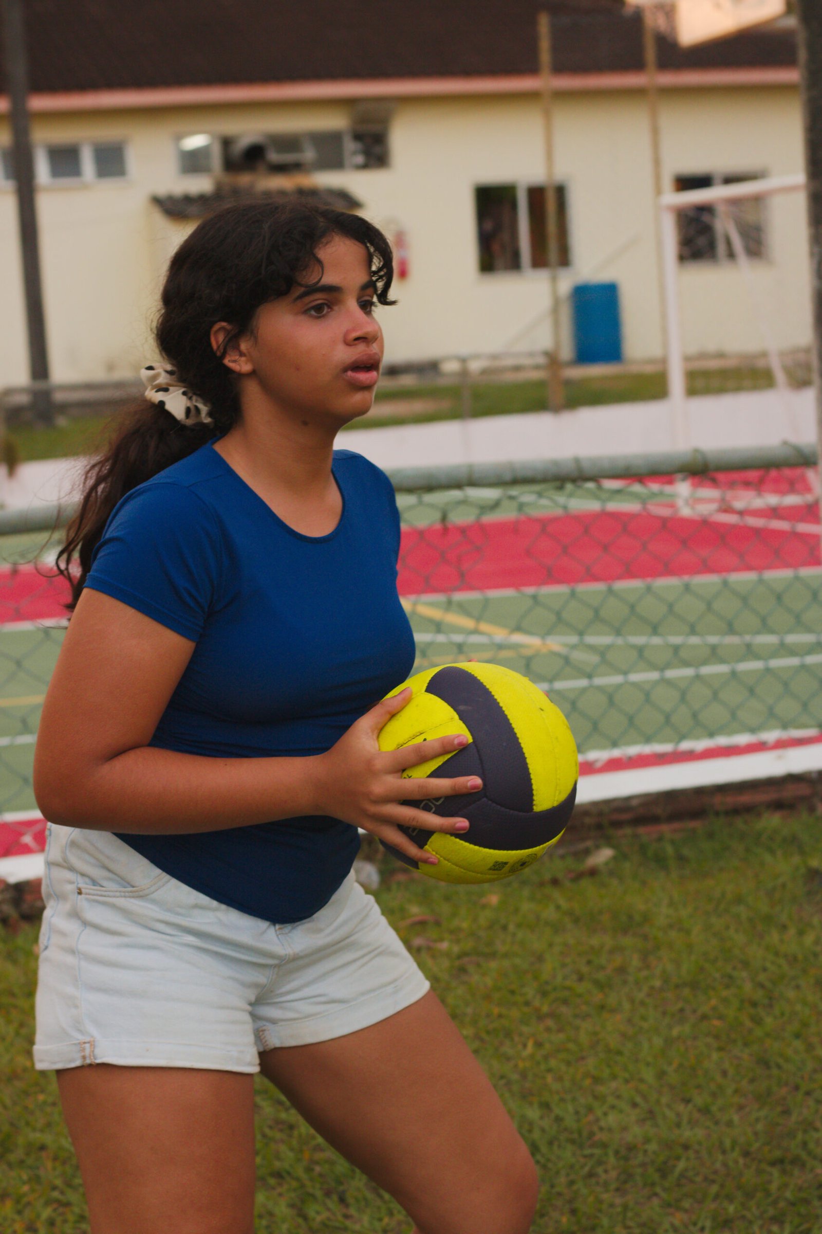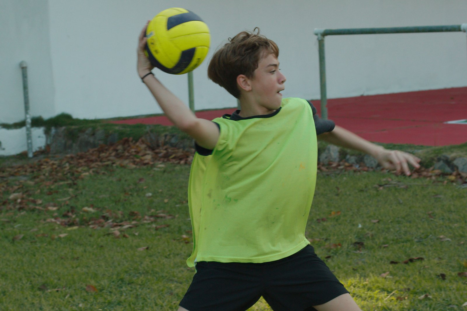 O jogo é um mistura de baleou, handebol e futebol. Pois as equipes ao passar a bola para o colega é preciso jogar com a mão. A movimentação acontece livre, de um jogador para outro até chegar próximo ao gol. Porém na passagem da bola os jogadores podem balear o adversário e o mesmo fica sentado baleado até alguém do seu time agarrar a bola para que ele siga no jogo. Seguindo a ordem da gincana, o grupo foi divivido nos times Jereré e Jamales. E a galera não decepcionou, seguiram as erras de forma leve e divertita mas com muita disputa para alcançar os pontos para sua equipe.