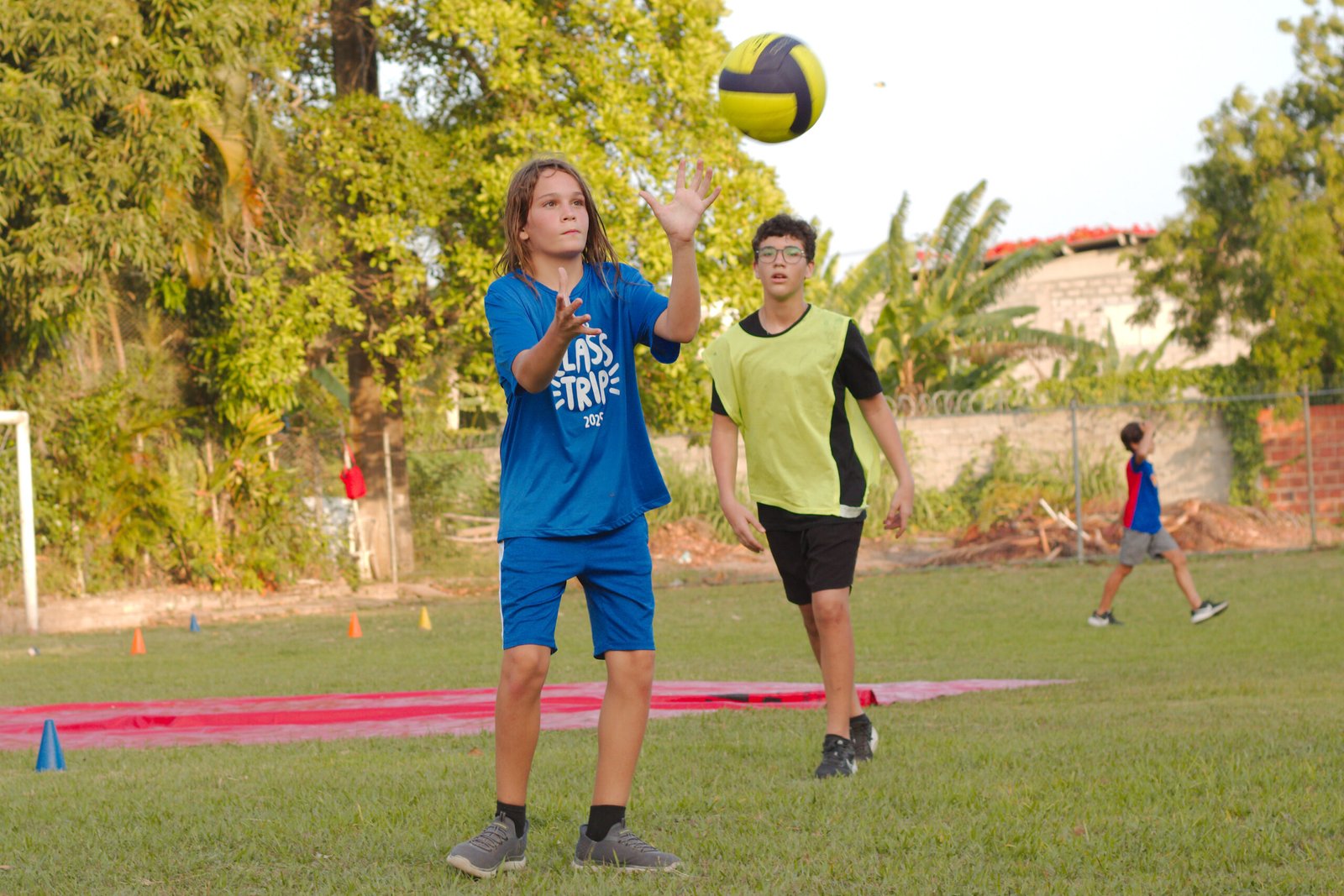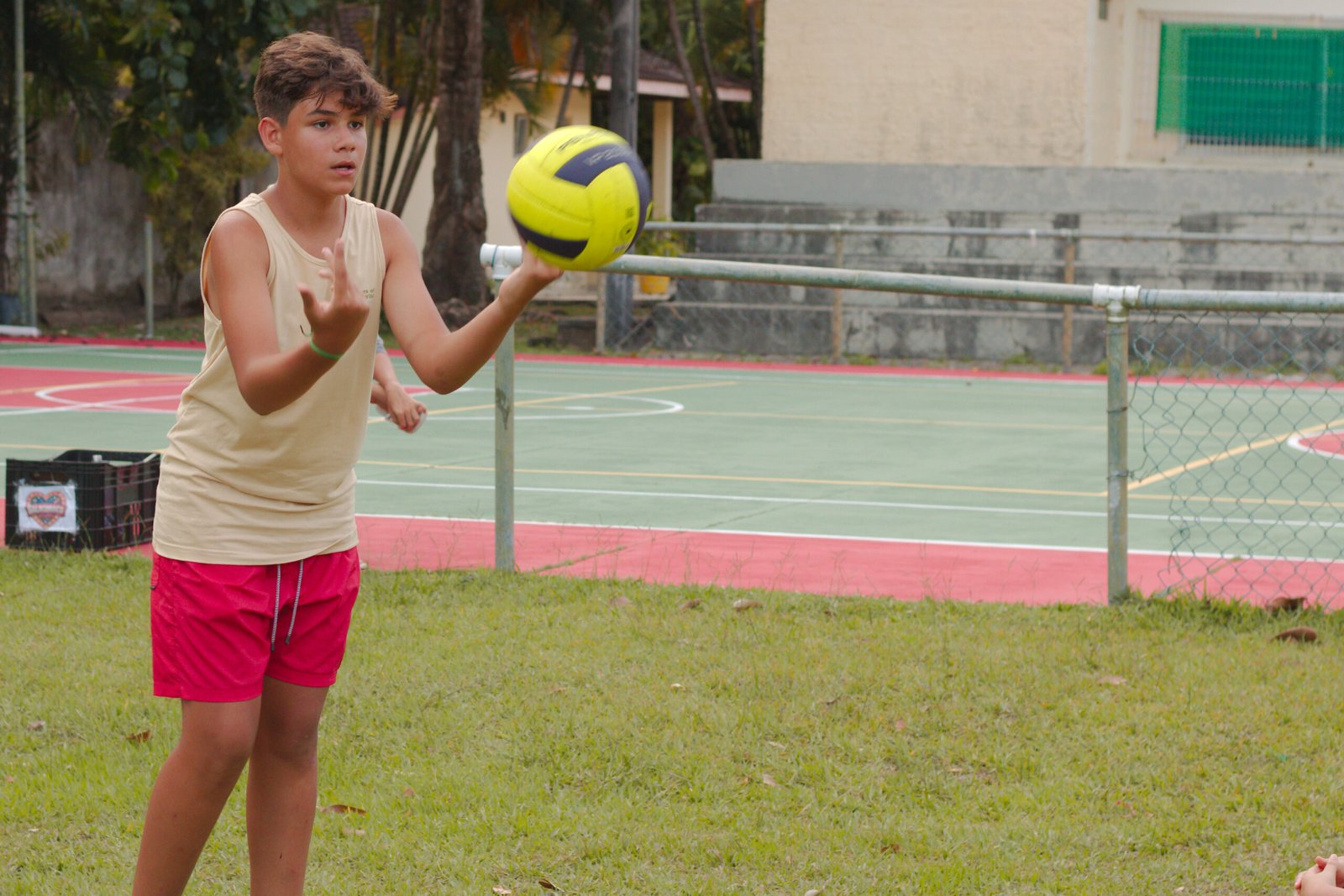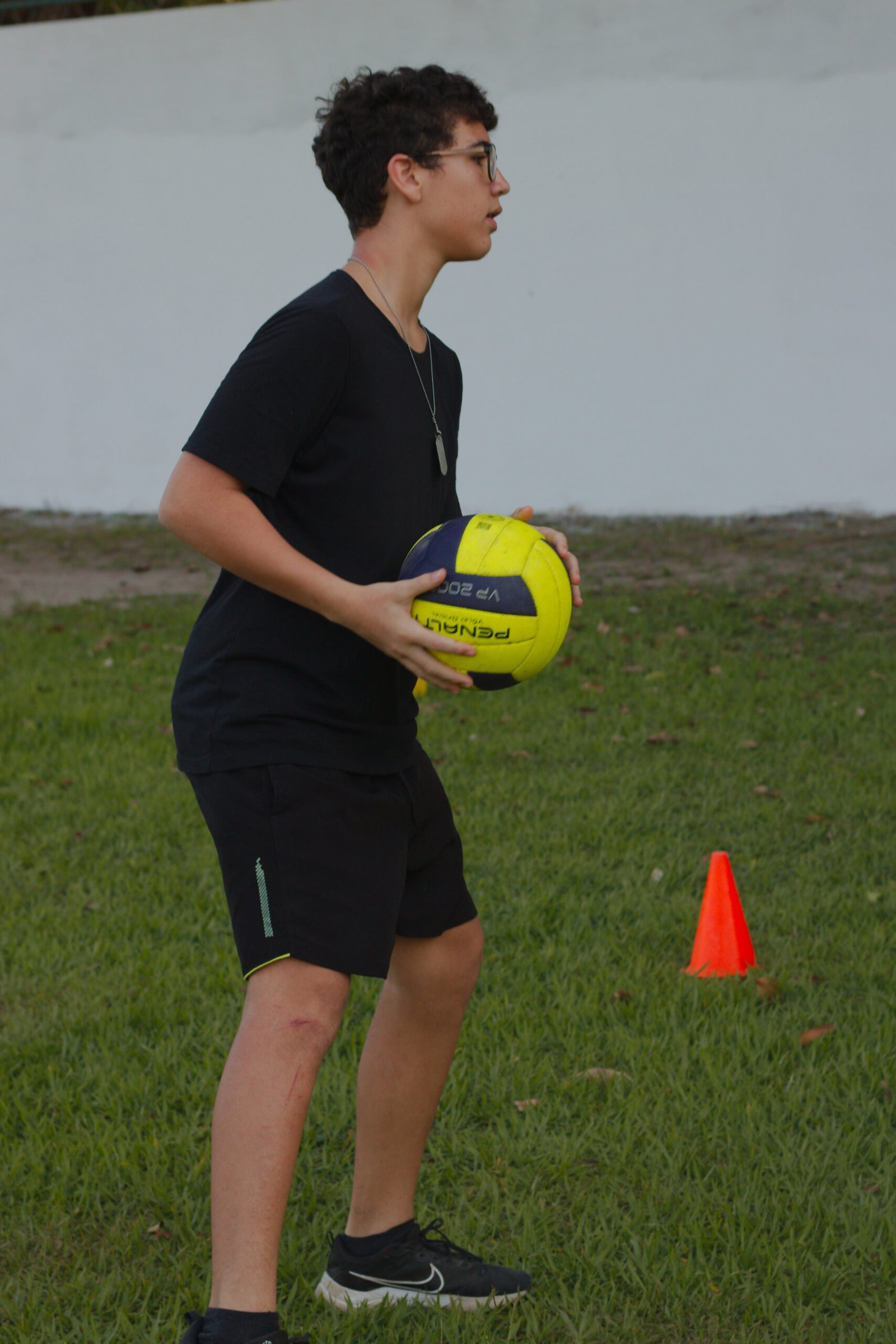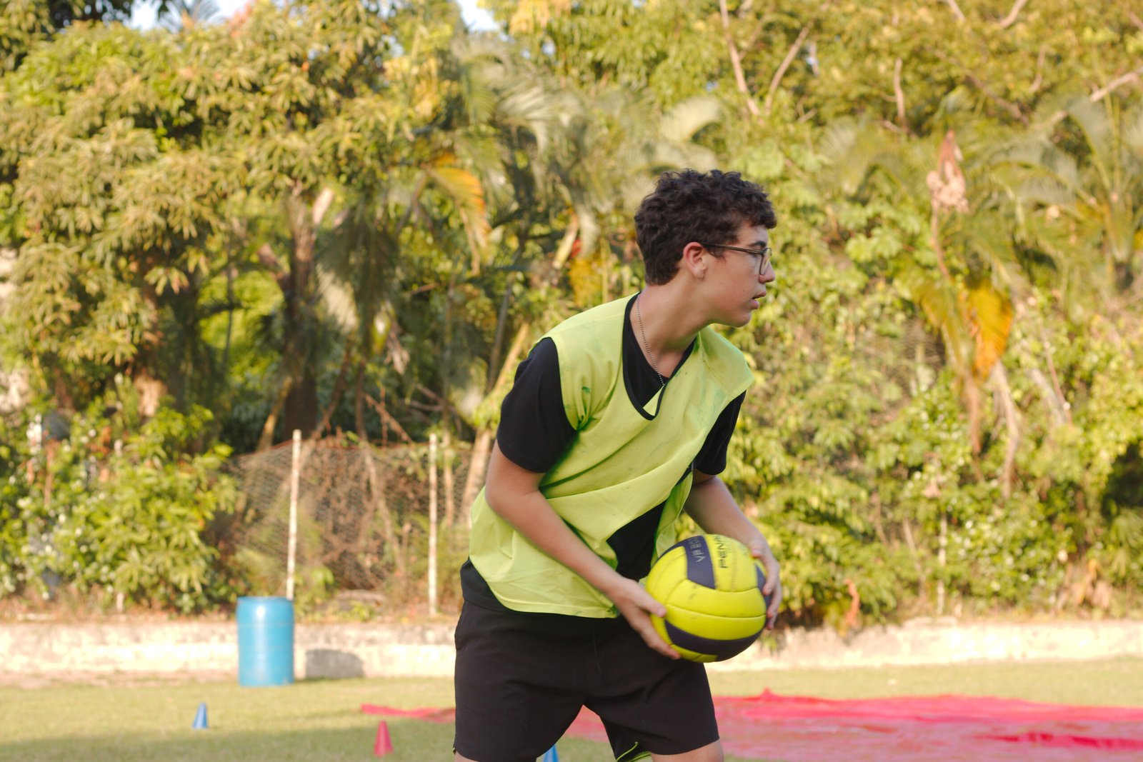 O jogo é um mistura de baleou, handebol e futebol. Pois as equipes ao passar a bola para o colega é preciso jogar com a mão. A movimentação acontece livre, de um jogador para outro até chegar próximo ao gol. Porém na passagem da bola os jogadores podem balear o adversário e o mesmo fica sentado baleado até alguém do seu time agarrar a bola para que ele siga no jogo. Seguindo a ordem da gincana, o grupo foi divivido nos times Jereré e Jamales. E a galera não decepcionou, seguiram as erras de forma leve e divertita mas com muita disputa para alcançar os pontos para sua equipe.