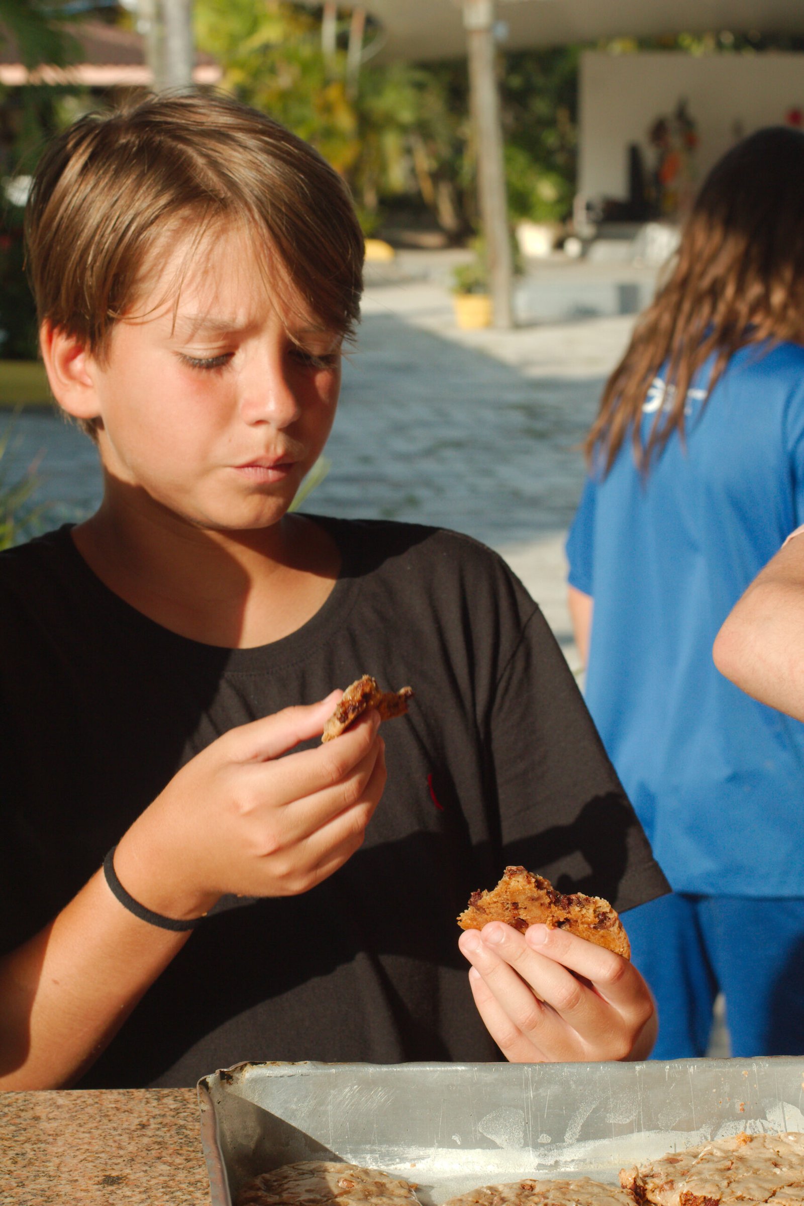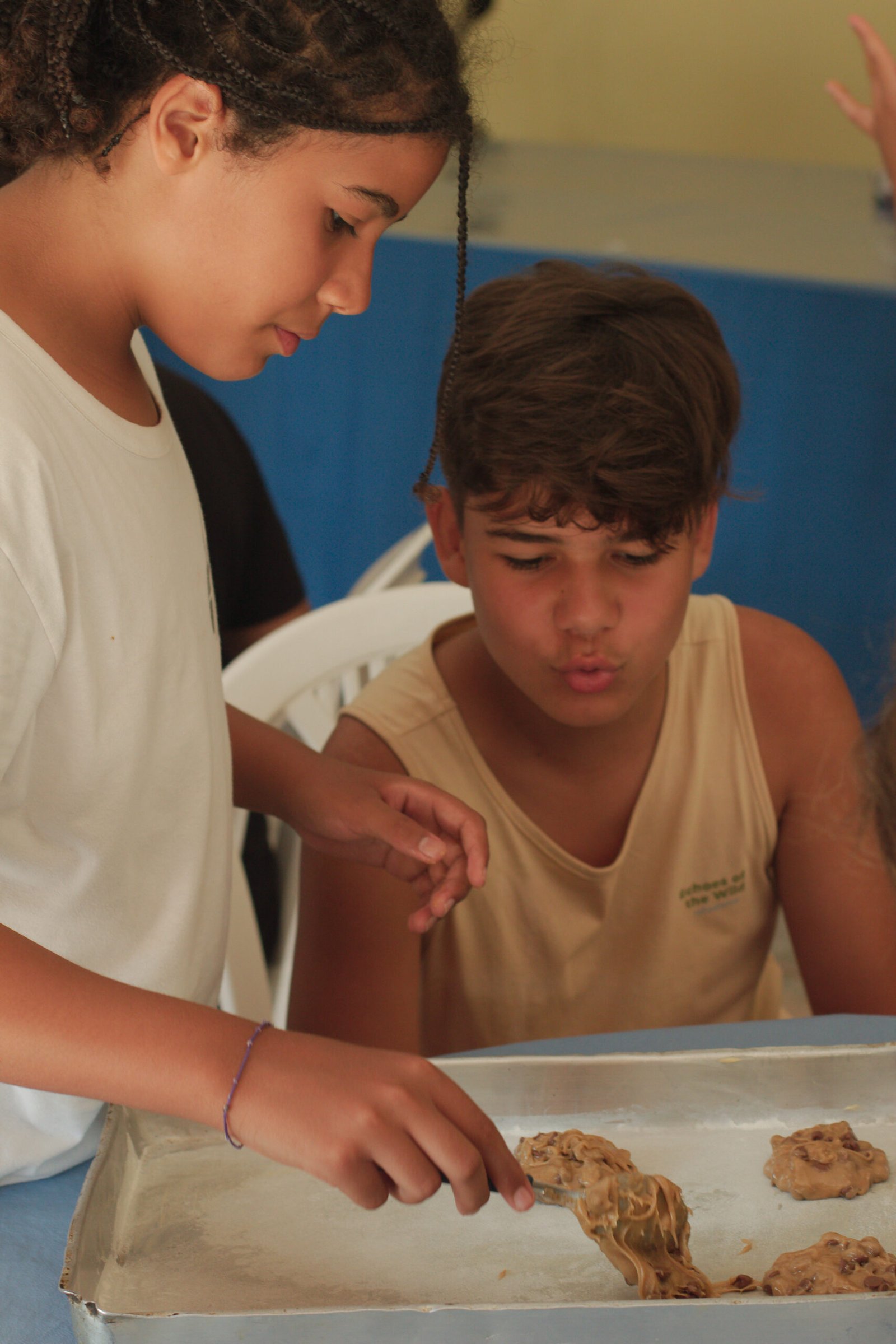 O Balacobaco segue quebrando tudo neste dia de Domingo ensolarado, depois de uma manhã diferente, à tarde teve a oficina de cookie e o Balegol. A galera colocou a mão na massa, com ajuda de Tia Marcela e dos outros monitores, eles prepararam os famosos cookies americanos. Entre muito papo e diversão, os cookies ficaram uma delícia. As duas misturas ficaram incríveis, pois tiveram gostinho de chocolate e uma competição de cheia de emoções.