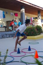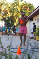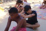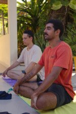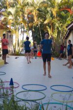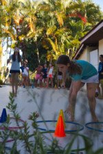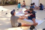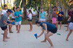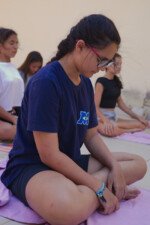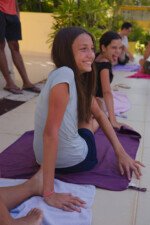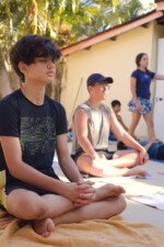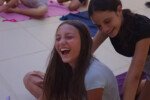 Hora de alongar o esqueleto. Kaya N’gan Daya, depois de se preparar fisicamente para a longa jornada vivida no Jogo de Vilas que está por acontecer, focou na preparação espiritual. Antes da revolução, a calmaria. Fizeram uns minutinhos de alongamento e uma meditação com a ajuda de tia Luba e Bia, emprestadas do Navio Pirata. Agora sim estão prontos!