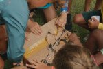 Bom dia Saltimbancos! Na aventura de hoje, a criançada partiu para o sítio vizinho a Uniser. Na chegada, encontraram uma pirata que estava disposta a dividir o tesouro com os acampantes se eles a ajudassem a encontrar. Determinados atrás das pistas, caminharam por todo o espaço, dançaram, atravessaram as pontes, correram e se divertiram muito. No meio do percurso, encontraram outro pirata, mas esse era egoísta e queria o tesouro só para ele. Por fim, graças a todas as dicas e a inteligência da galera, finalmente encontraram o tão sonhado tesouro, uma caixa de doces!!!! E claro, eles compartilharam com a pirata do bem.