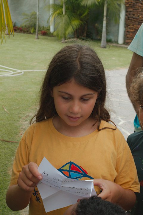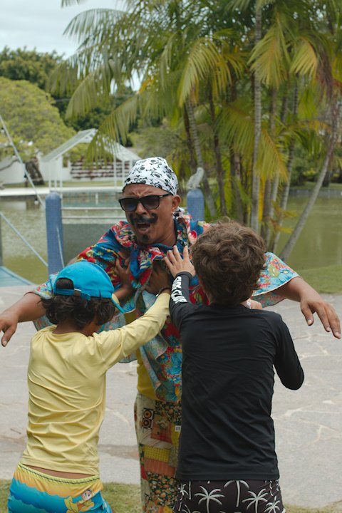 Bom dia Saltimbancos! Na aventura de hoje, a criançada partiu para o sítio vizinho a Uniser. Na chegada, encontraram uma pirata que estava disposta a dividir o tesouro com os acampantes se eles a ajudassem a encontrar. Determinados atrás das pistas, caminharam por todo o espaço, dançaram, atravessaram as pontes, correram e se divertiram muito. No meio do percurso, encontraram outro pirata, mas esse era egoísta e queria o tesouro só para ele. Por fim, graças a todas as dicas e a inteligência da galera, finalmente encontraram o tão sonhado tesouro, uma caixa de doces!!!! E claro, eles compartilharam com a pirata do bem.