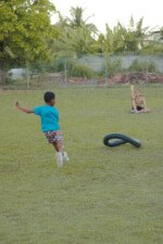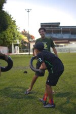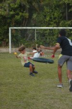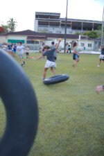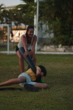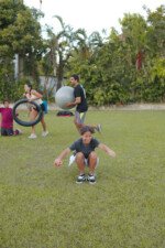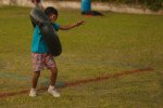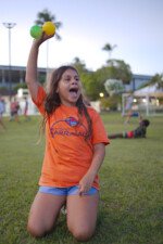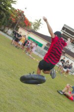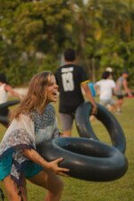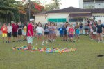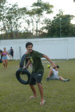 Entre risadas e muita empolgação, os participantes literalmente rolaram em uma divertida corrida de obstáculos. O desafio era simples só na teoria: pegar uma bola colorida, atravessar o percurso e chegar ao outro lado sem ser atingido. Quem não tivesse tanta sorte assim precisava sentar, respirar fundo e esperar que outro colega pegasse a bola para tentar novamente.