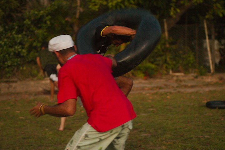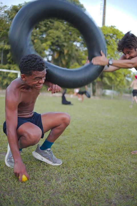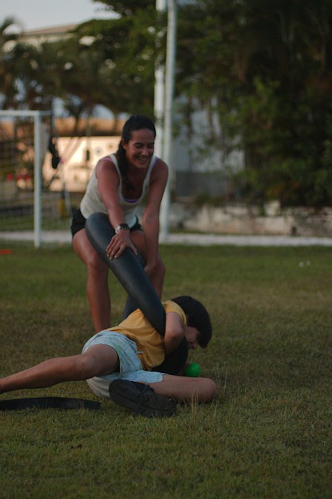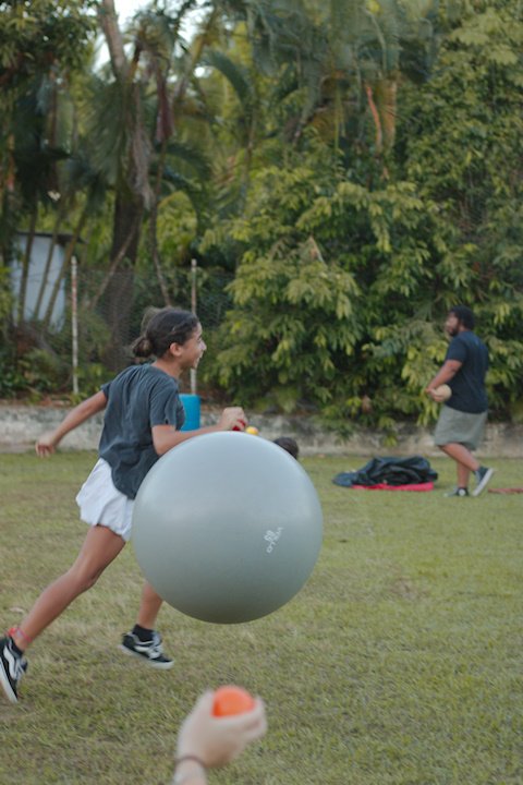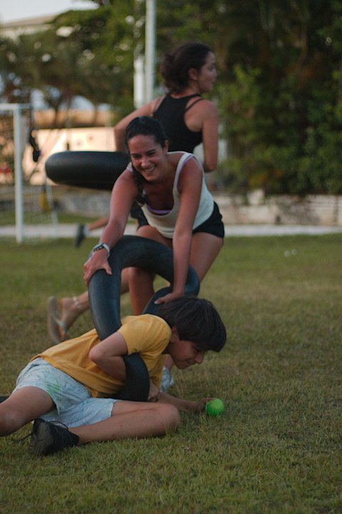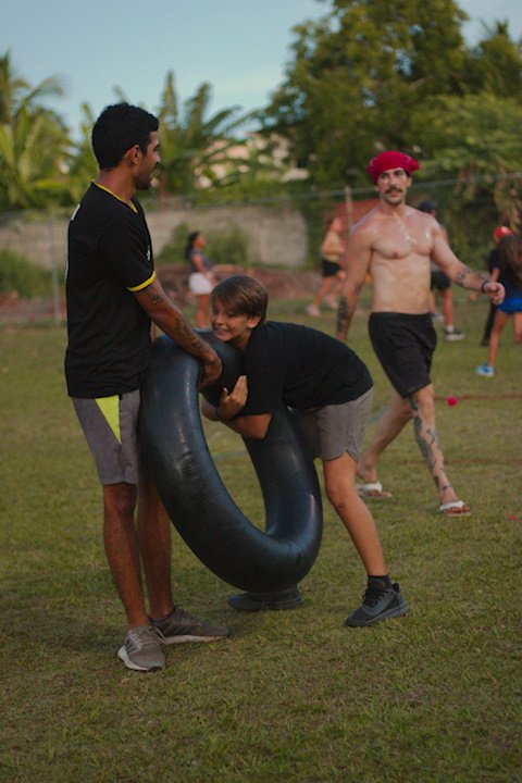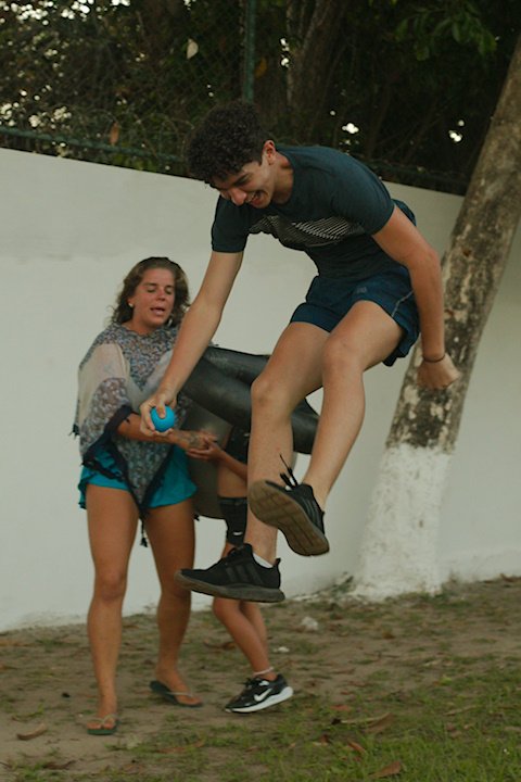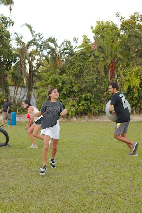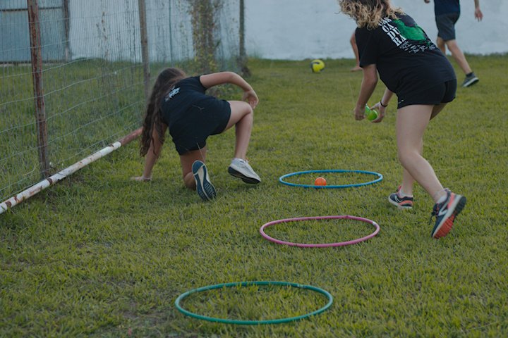 Entre risadas e muita empolgação, os participantes literalmente rolaram em uma divertida corrida de obstáculos. O desafio era simples só na teoria: pegar uma bola colorida, atravessar o percurso e chegar ao outro lado sem ser atingido. Quem não tivesse tanta sorte assim precisava sentar, respirar fundo e esperar que outro colega pegasse a bola para tentar novamente.