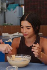 Parece que uma sobremesa depois do almoço não foi suficiente para nossas Arapongas, pois acabado o descanso eles retornaram ao refeitório para uma Oficina de Cookies! E quem recusa um docinho, não é mesmo?