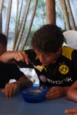 Com esse boom de açucar delicioso no sangue, precisavam gastar as energias. E nada melhor que um bom joguinho de bola para isso! Divididos nas equipes começaram uma batalha de Linha de Frente!