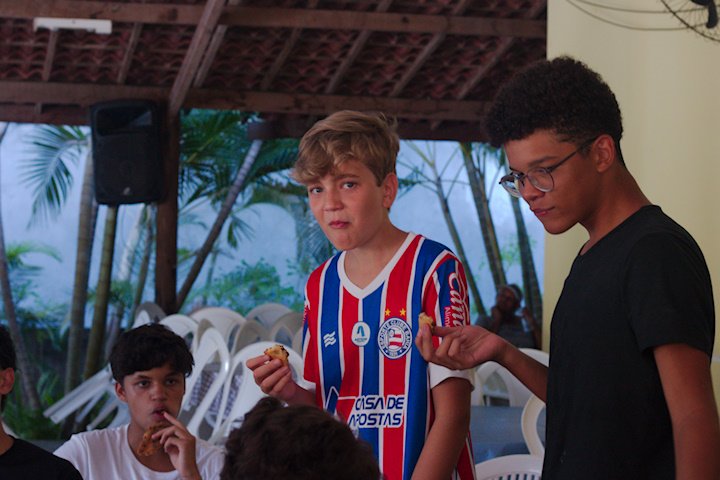 Com esse boom de açucar delicioso no sangue, precisavam gastar as energias. E nada melhor que um bom joguinho de bola para isso! Divididos nas equipes começaram uma batalha de Linha de Frente!