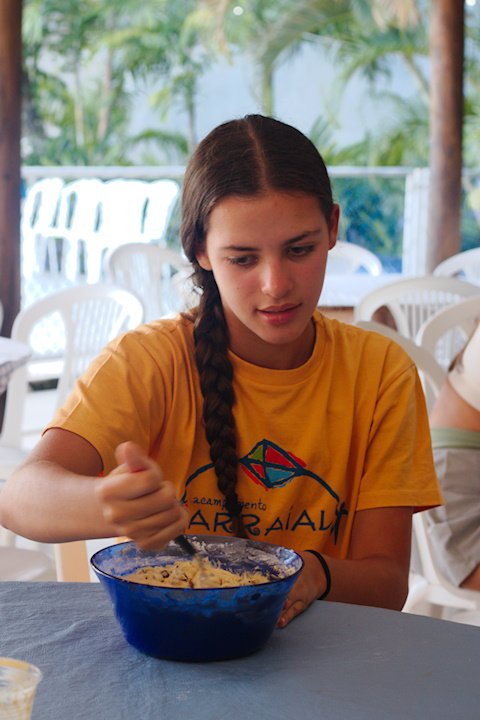 Parece que uma sobremesa depois do almoço não foi suficiente para nossas Arapongas, pois acabado o descanso eles retornaram ao refeitório para uma Oficina de Cookies! E quem recusa um docinho, não é mesmo?