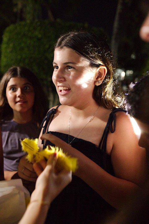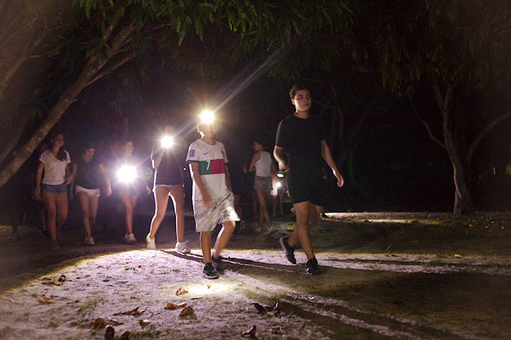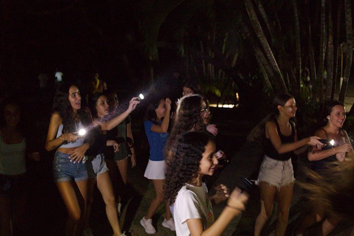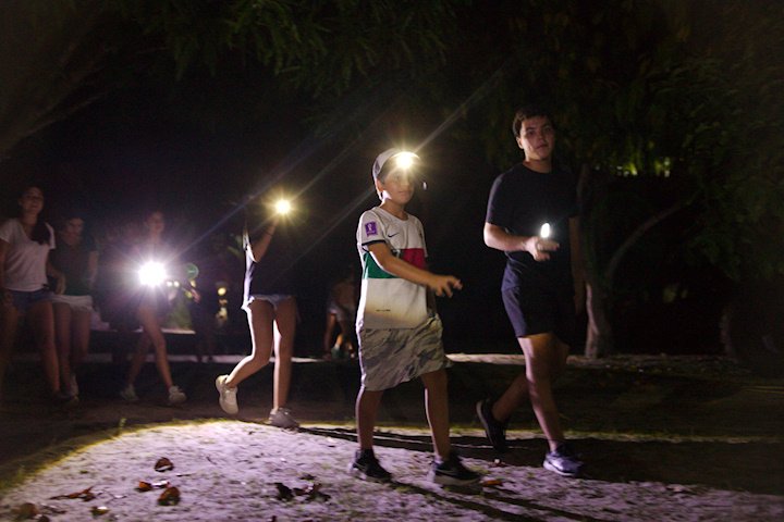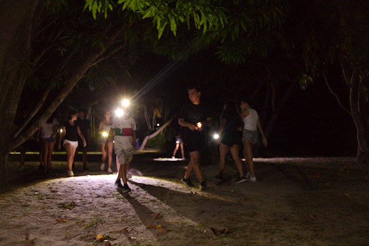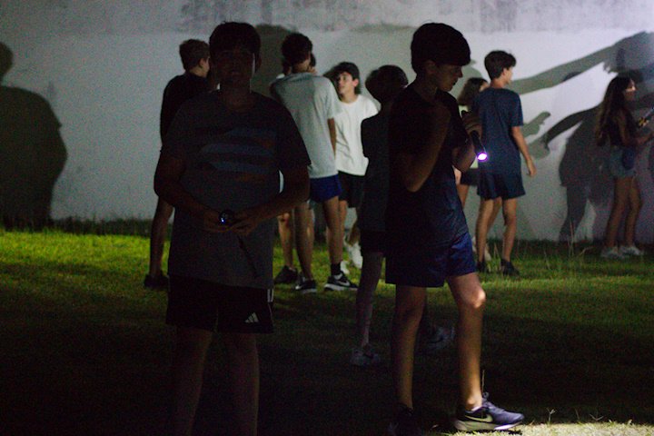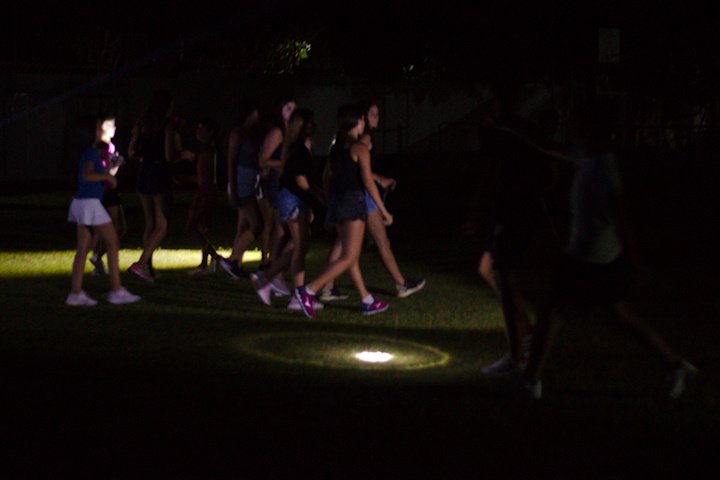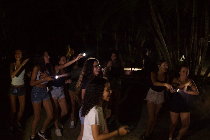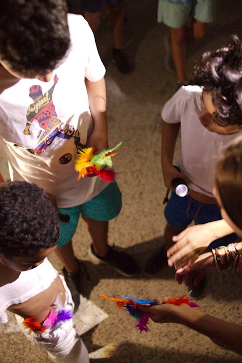 O sol se pôs e os acampantes mergulharam no anoitecer! No Pios, o desafio é de entrar na escuridão total, os acampantes precisam explorar cada canto do sítio (com muito cuidado com as lanternas) para encontrar os pássaros e conquistar suas penas.
