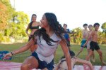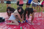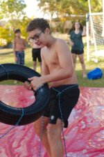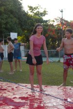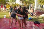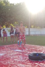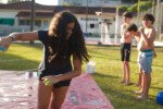 Se você acha que voar é fácil, tente fazer isso em uma lona cheia de sabão e preso a um pneu (hahaha!). A adrenalina adentrou o nosso ninho arraialesco! Os Sabiás viveram muiiiito jogando A lona 2.0! Os programadores enlouqueceram!!! A regra era doida: todo mundo unido pelo pneu, deslizando pelo sabão para resgatar as bolinhas e levar para o balde da equipe. Teve gente que caiu, que derrubou, mas, o importante é que todo mundo levantou rindo! Porque no fim das contas, a gente que é Sabiá, só quer ser feliz!