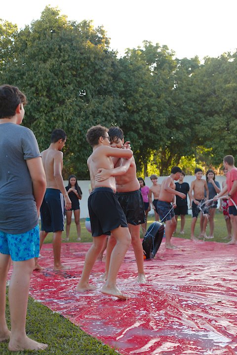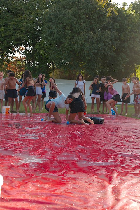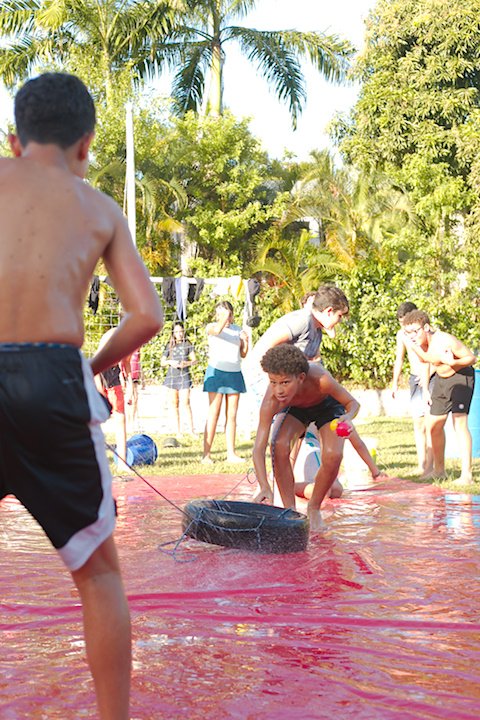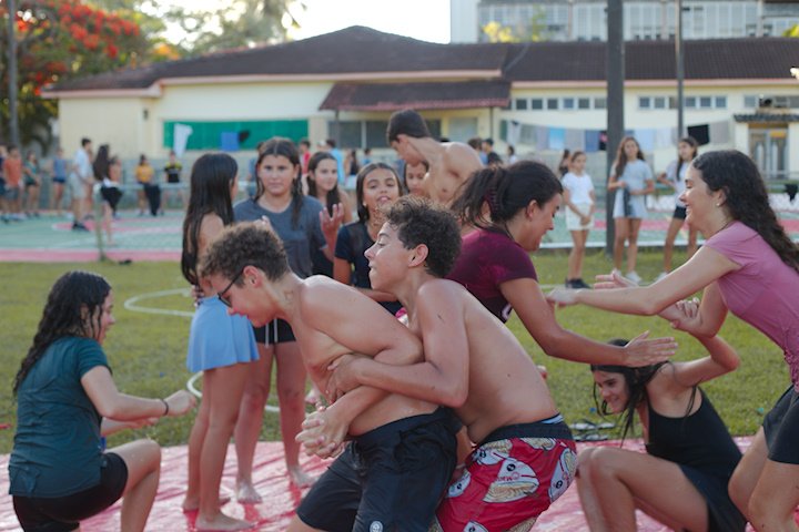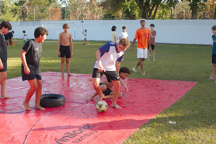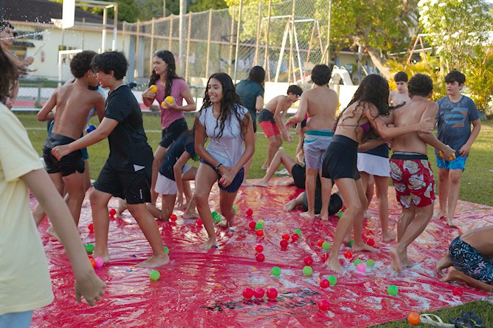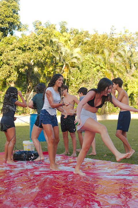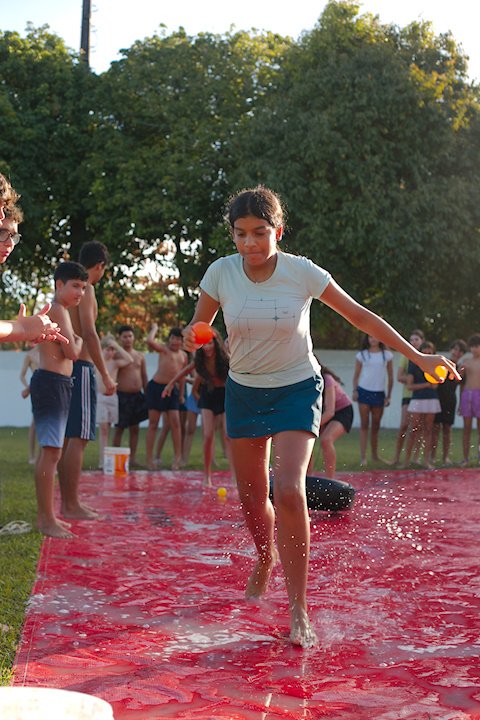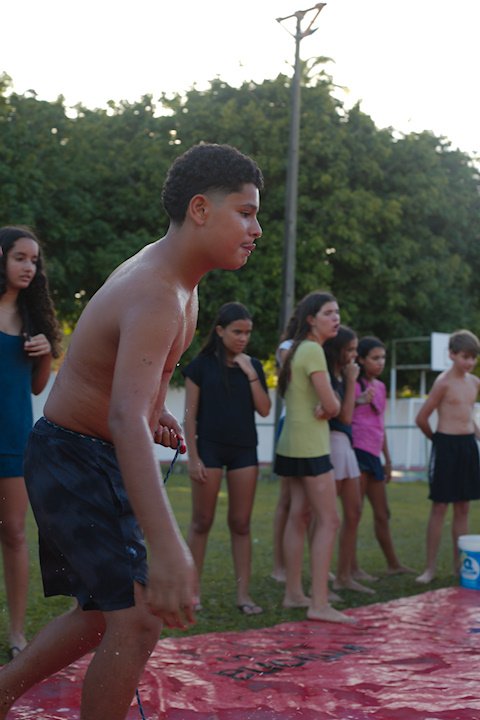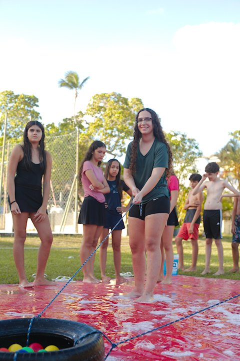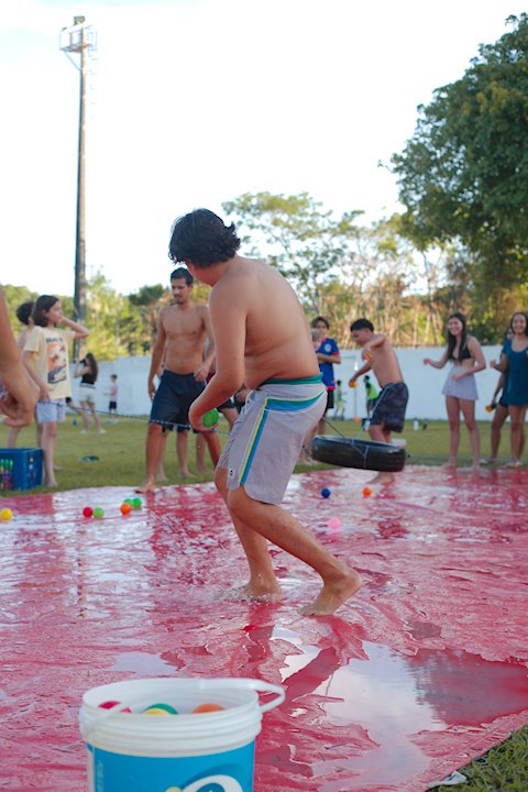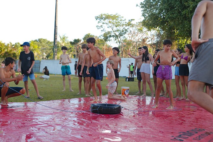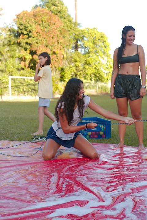 Se você acha que voar é fácil, tente fazer isso em uma lona cheia de sabão e preso a um pneu (hahaha!). A adrenalina adentrou o nosso ninho arraialesco! Os Sabiás viveram muiiiito jogando A lona 2.0! Os programadores enlouqueceram!!! A regra era doida: todo mundo unido pelo pneu, deslizando pelo sabão para resgatar as bolinhas e levar para o balde da equipe. Teve gente que caiu, que derrubou, mas, o importante é que todo mundo levantou rindo! Porque no fim das contas, a gente que é Sabiá, só quer ser feliz!
