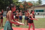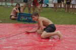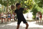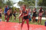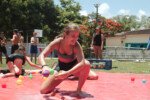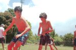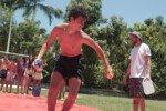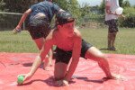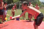 No segundo tempo, todos foram convocados para a queridinha das manhãs de sol escaldante: a lona! Unidos pela amizade e por cordas amarradas a um pneu, o objetivo das equipes era coletar o máximo de bolinhas possível, mas com muito cuidado para não deslizar e botar tudo a perder.