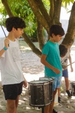 Depois do almoço e o descanso merecido no ninho, o tuiuiús foram afinar seus ritmos na oficina de percussão com o monitor David. Eles aprenderam, de forma introdutória, a ouvir e tocar os instrumentos de percussão no ritmo do samba- reggae, fazendo daquela farra que só, rolou até um vídeo ao final pra vocês verificarem a sintonia.