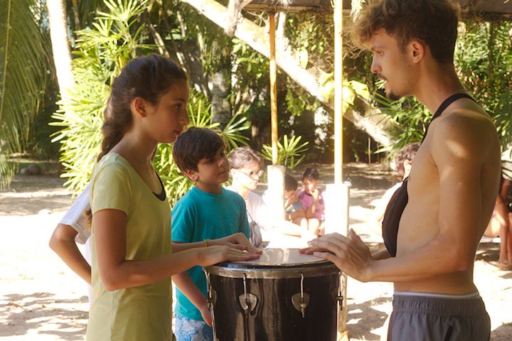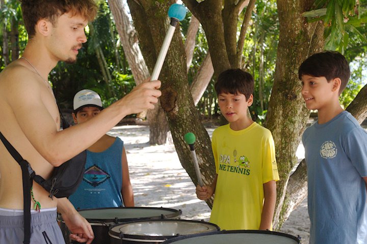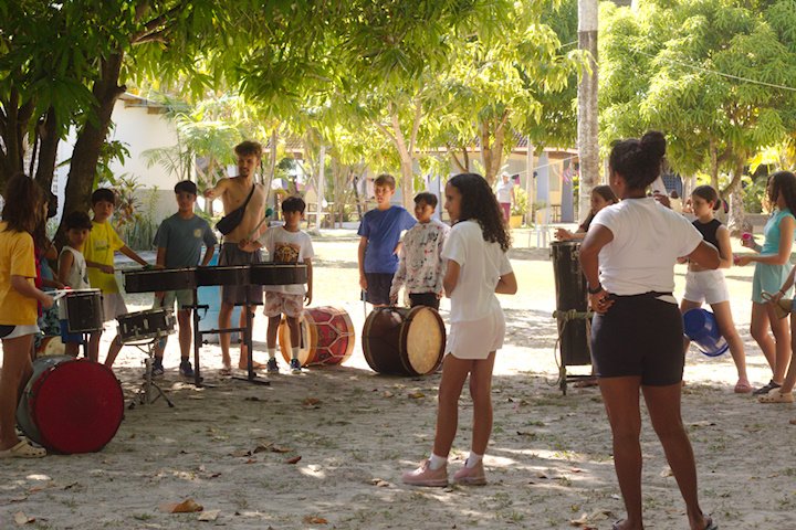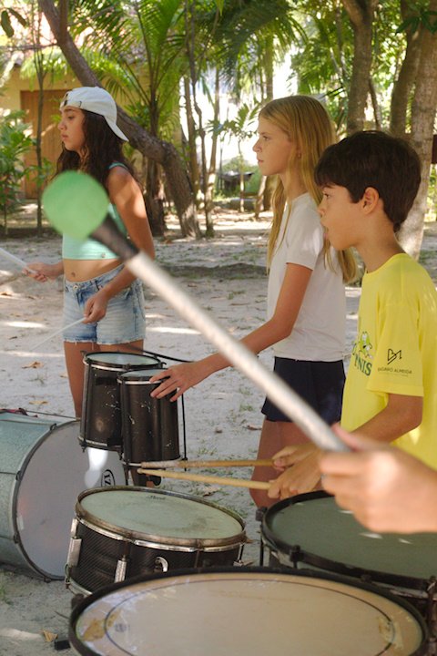 Depois do almoço e o descanso merecido no ninho, o tuiuiús foram afinar seus ritmos na oficina de percussão com o monitor David. Eles aprenderam, de forma introdutória, a ouvir e tocar os instrumentos de percussão no ritmo do samba- reggae, fazendo daquela farra que só, rolou até um vídeo ao final pra vocês verificarem a sintonia.