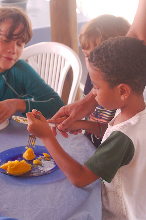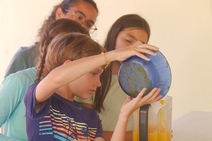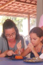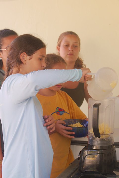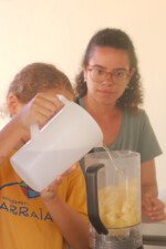 Assim como os pássaros aprendem a melodia nota por nota, as crianças seguiram cada passo das receitas com uma dedicação admirável. O resultado foi de uma tarde refrescante e cheia de novas descobertas e sabores.