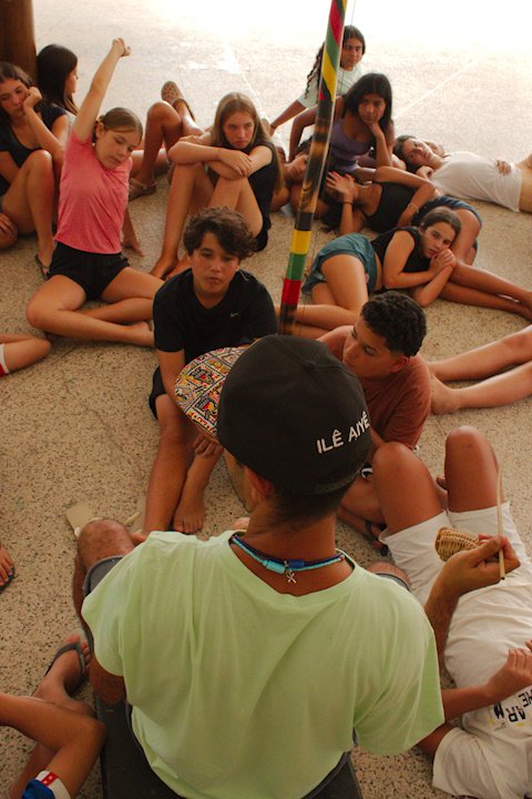 Os Sabiás cantaram: “Tio, a gente quer bandeirinha!!!!!”, a programação do Arraial ouviu! Então, veio aí a nossa famosa bandeirinha múltipla! AUÊÊEÊ!!! Ela foi muiiito solicitada pelos Sabiás! Nossos passarinhos estavam doidinhos por adrenalina e emoção! Bandeirinha com 4 equipes é maluquice! Foi todo mundo contra todo mundo e ganhou a equipe que teve a melhor estratégia!