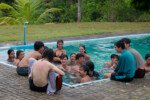 Teve muita altinha, futevôlei, jogo de carta, xadez, violão, banho de psicina, viuvinha, arco-íris e muuuuuuuuuuuuuuuito mais! Para finalizar o dia, se reuniram em volta da fogueira para admirar o céu estrelado, coisa que não se acha em qualquer cidade grande…