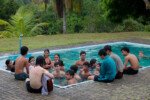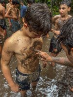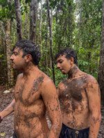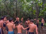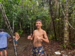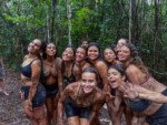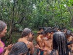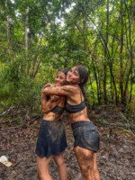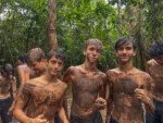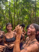 Pós noite de sono em barracas partiram cedo para uma aventura na trilha que os levou para uma guerra de lama! Mas tudo certo, faz parte da skincare, depois foi só se lavar na represa!